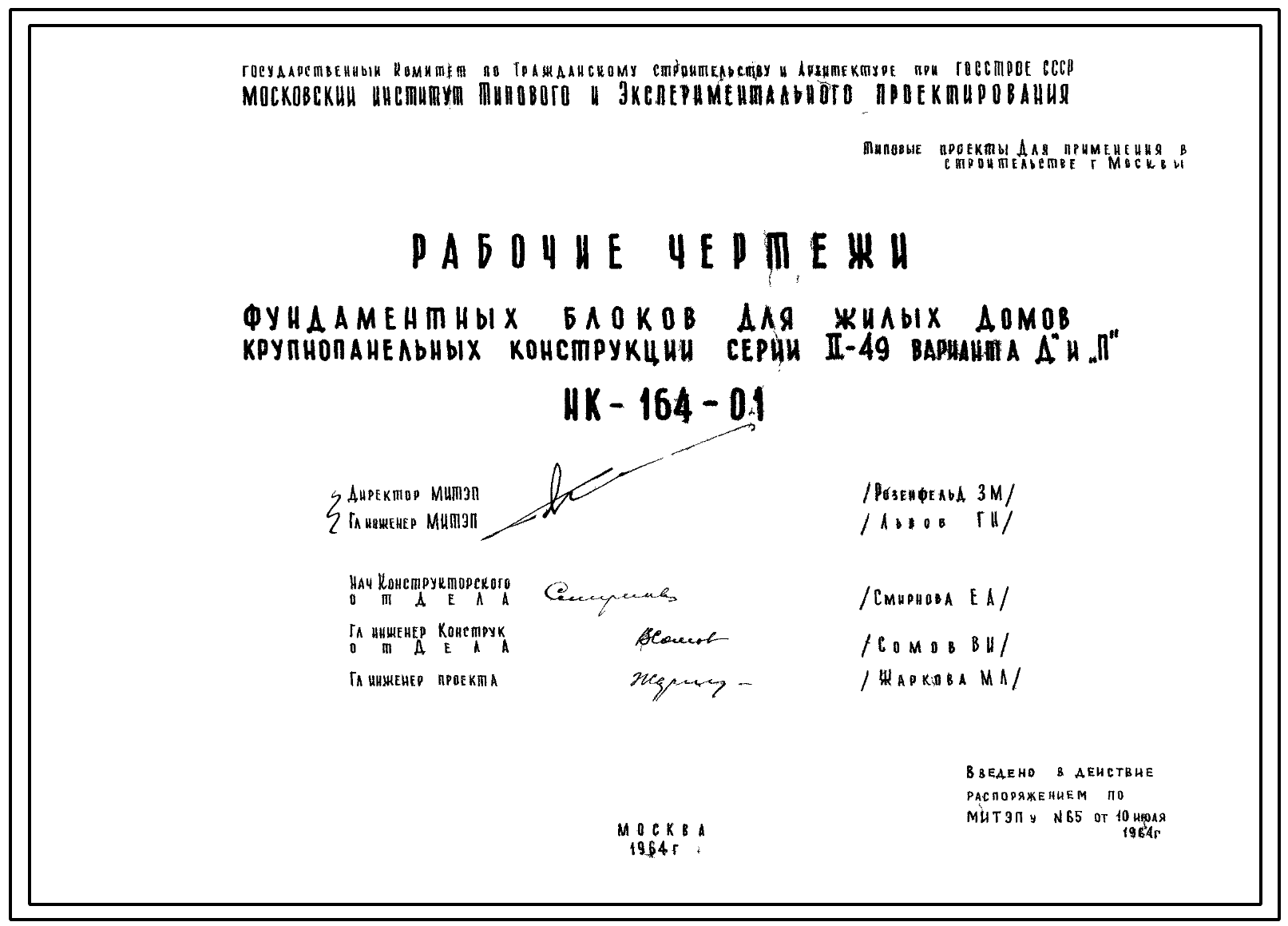 Шифр НК-164-01 Фундаментные блоки для жилых домов крупнопанельных конструкций серии II-49 вариант "Д" и "П" (1964 г.)