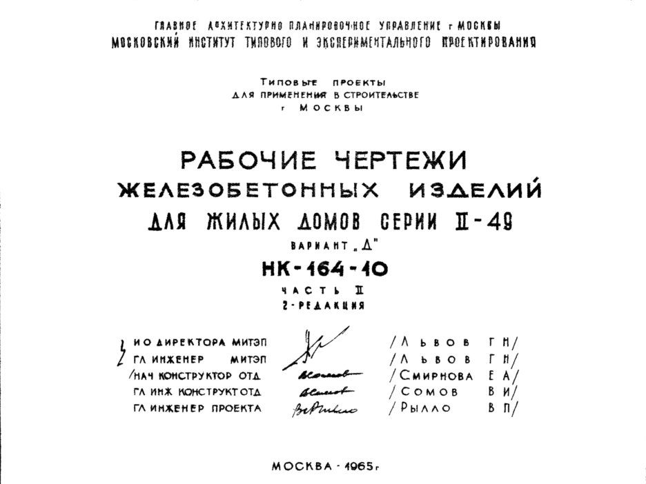 Шифр НК-164-10 Железобетонные изделия для жилых домов серии II-49 Вариант "Д" (1965 г.)