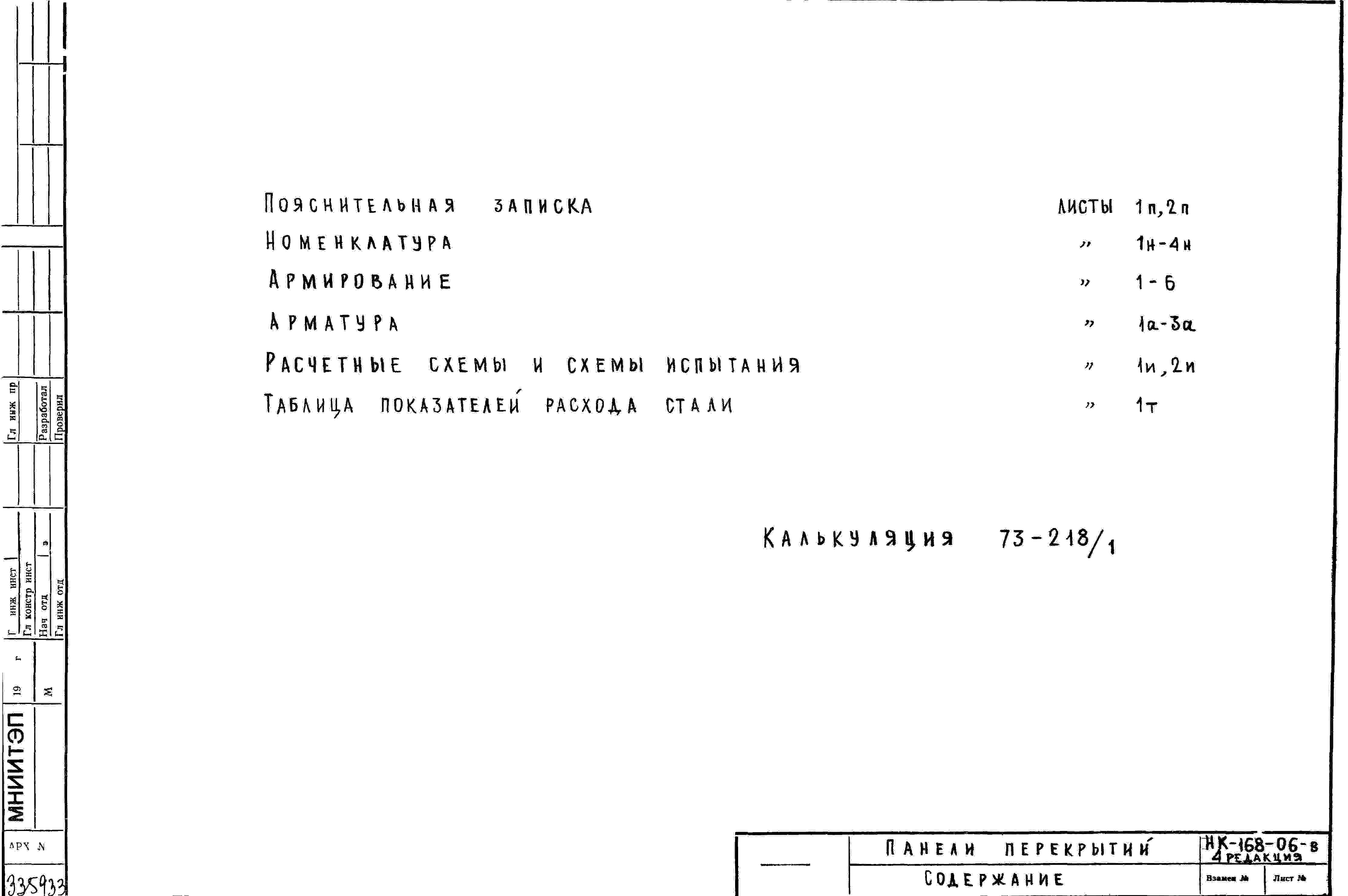 Шифр НК-168-06-в Прокатные панели перекрытий для жилых домов серии II-57/9-12 (1973 г.)