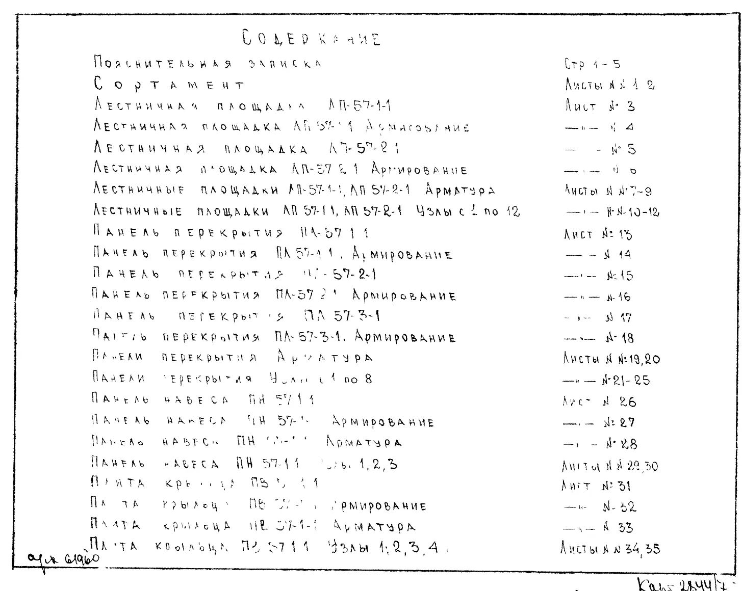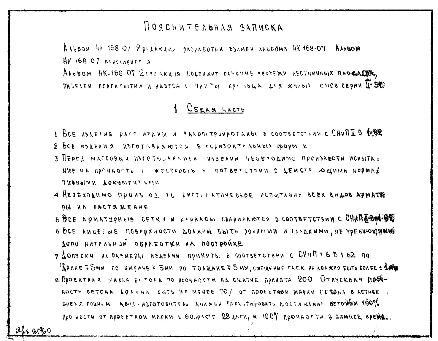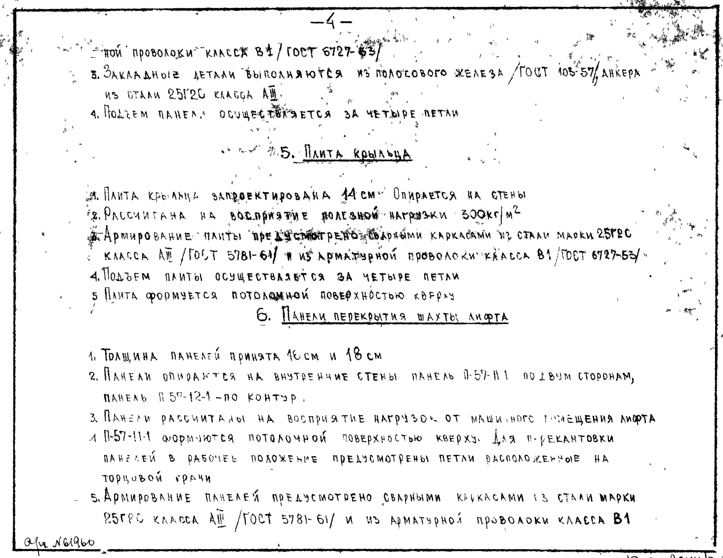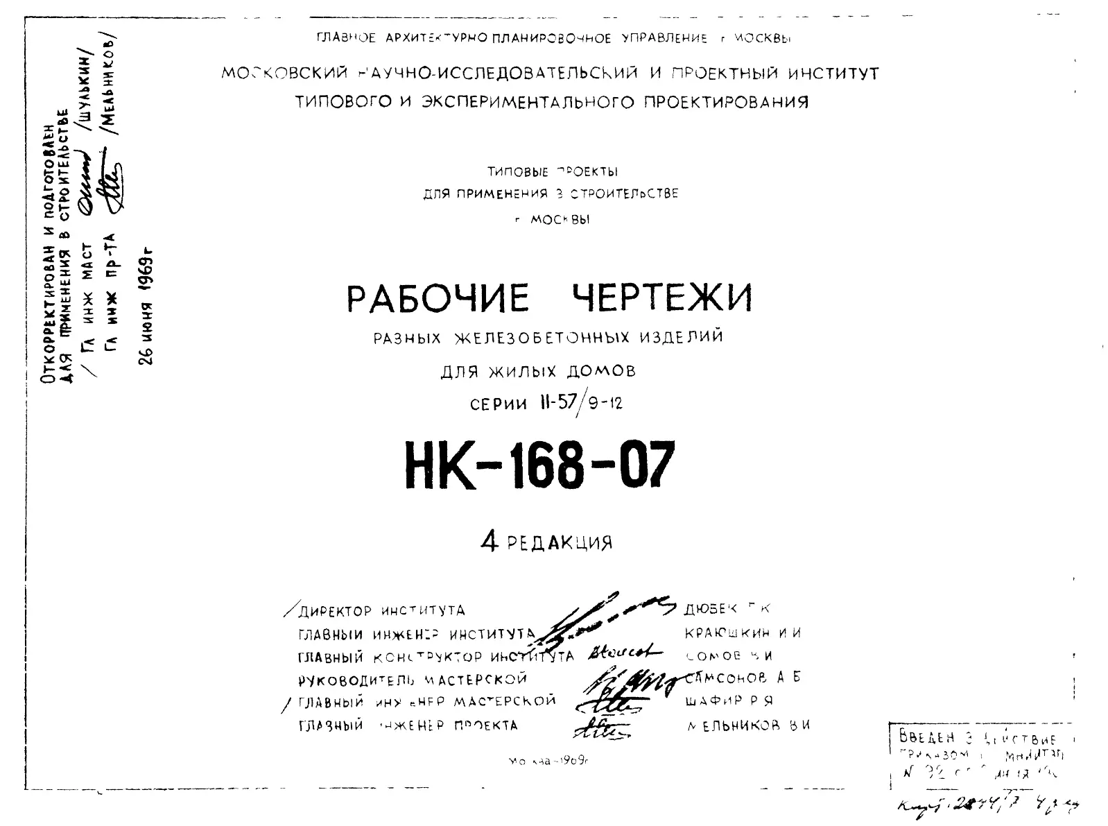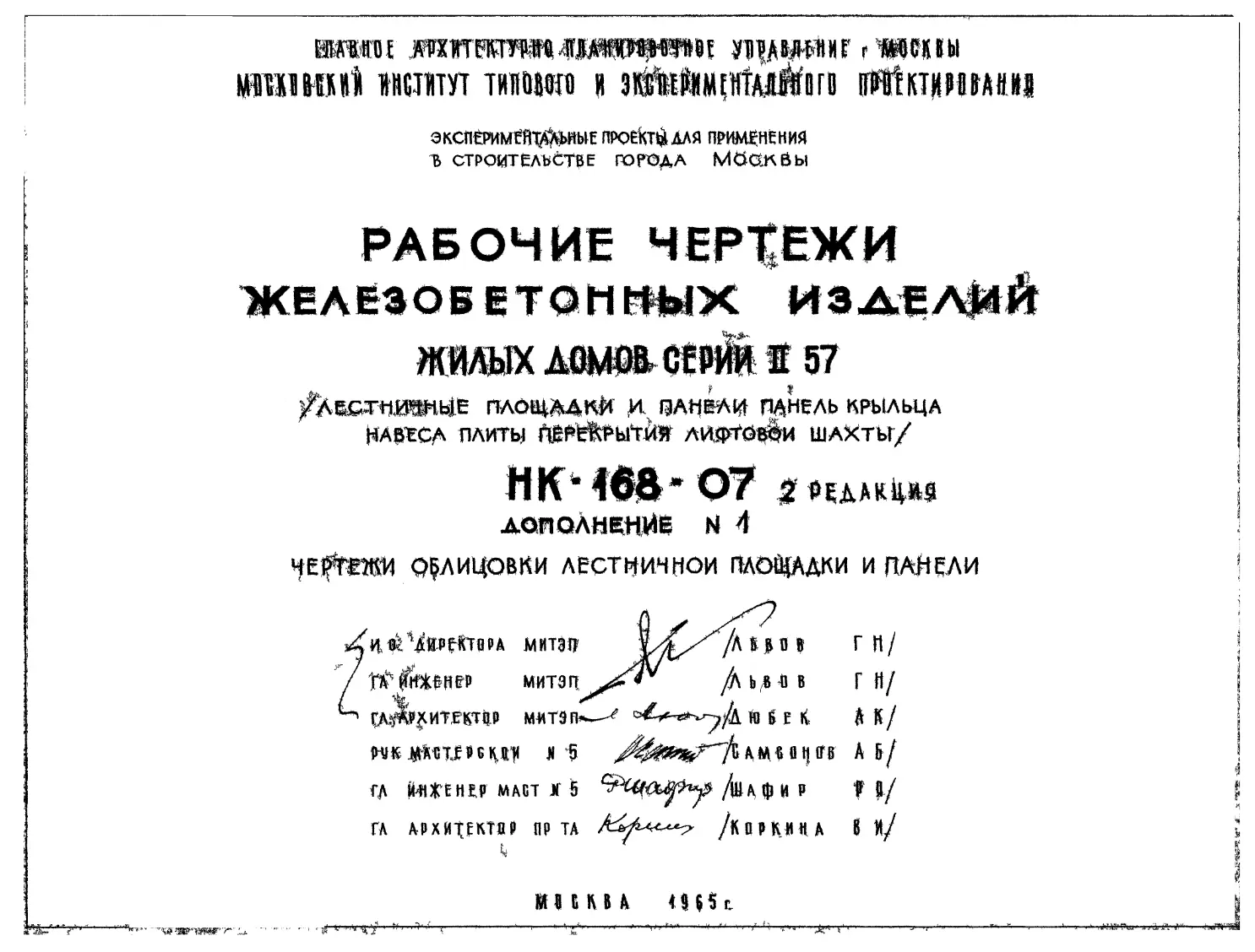 Шифр НК-168-07 Железобетонные изделия для жилых домов серии II-57 лестничные площадки и панели, панель крыльца, навеса, плиты перекрытия лифтовой шахты (1964 г.)