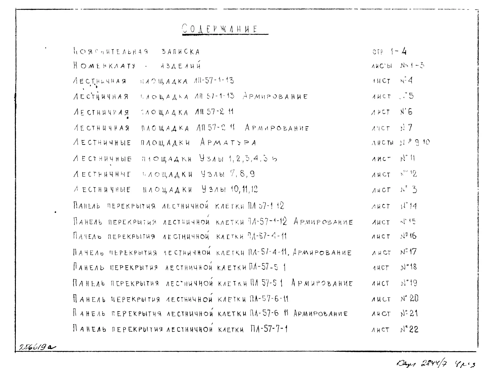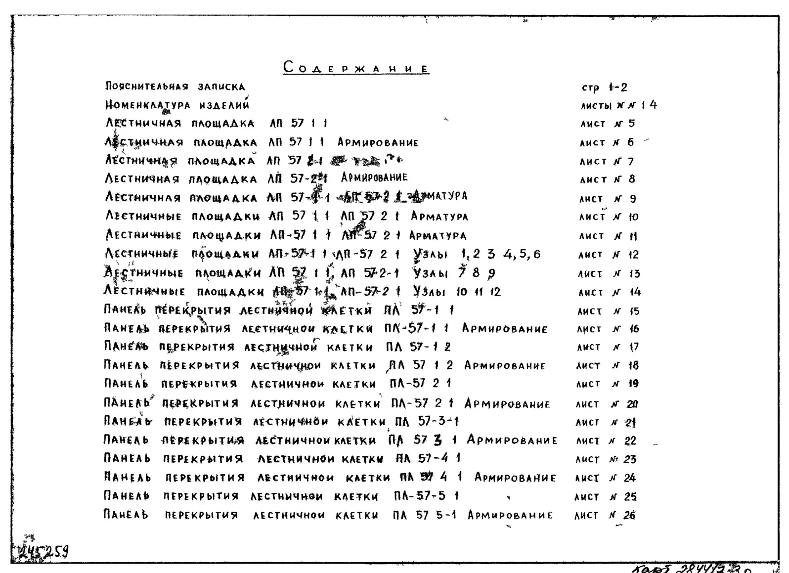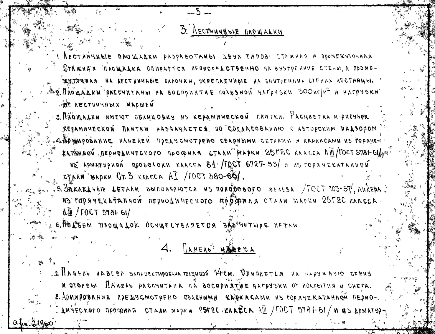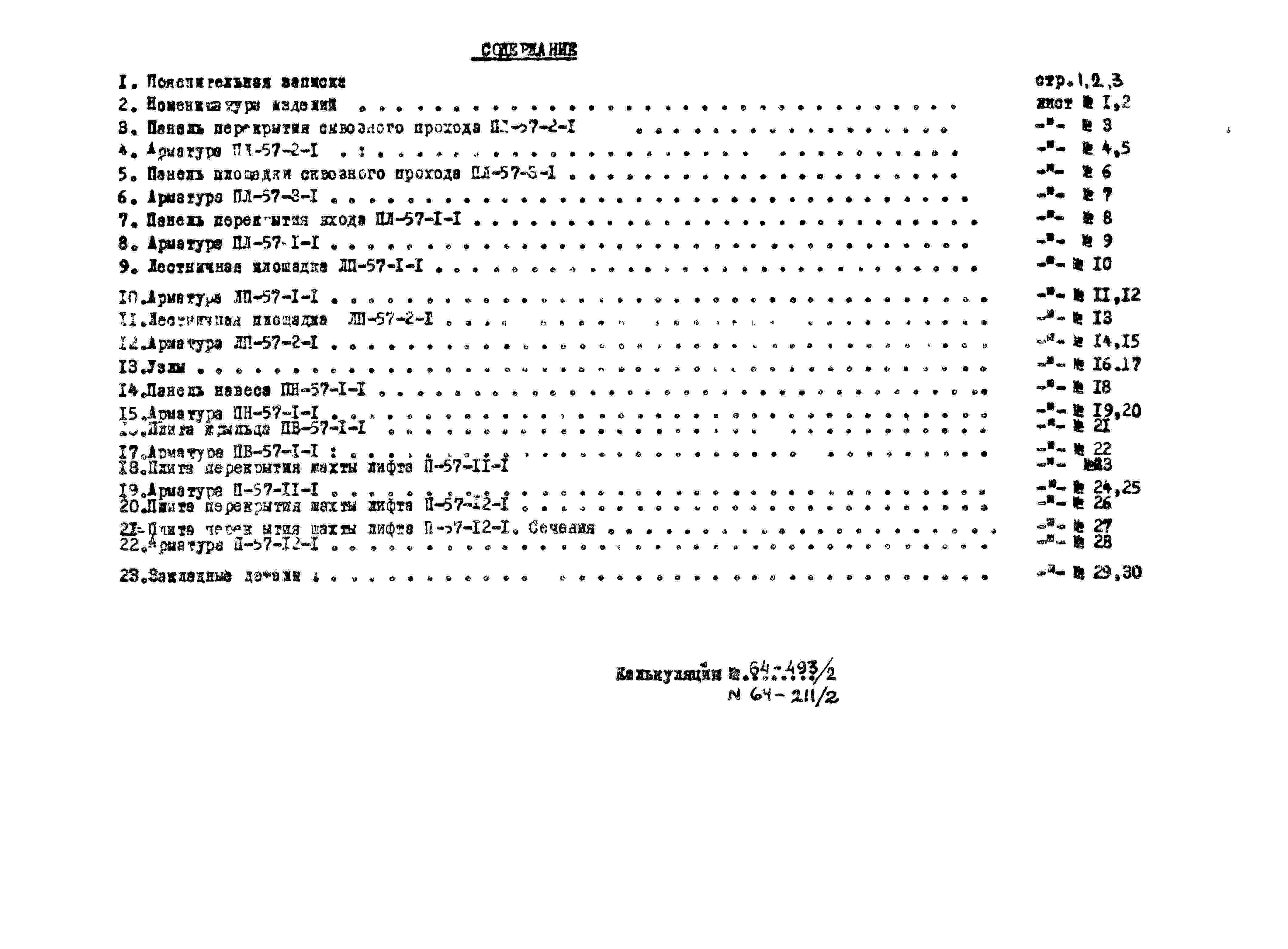Шифр НК-168-07 Железобетонные изделия для жилых домов серии II-57 лестничные площадки и панели, панель крыльца, навеса, плиты перекрытия лифтовой шахты (1964 г.)