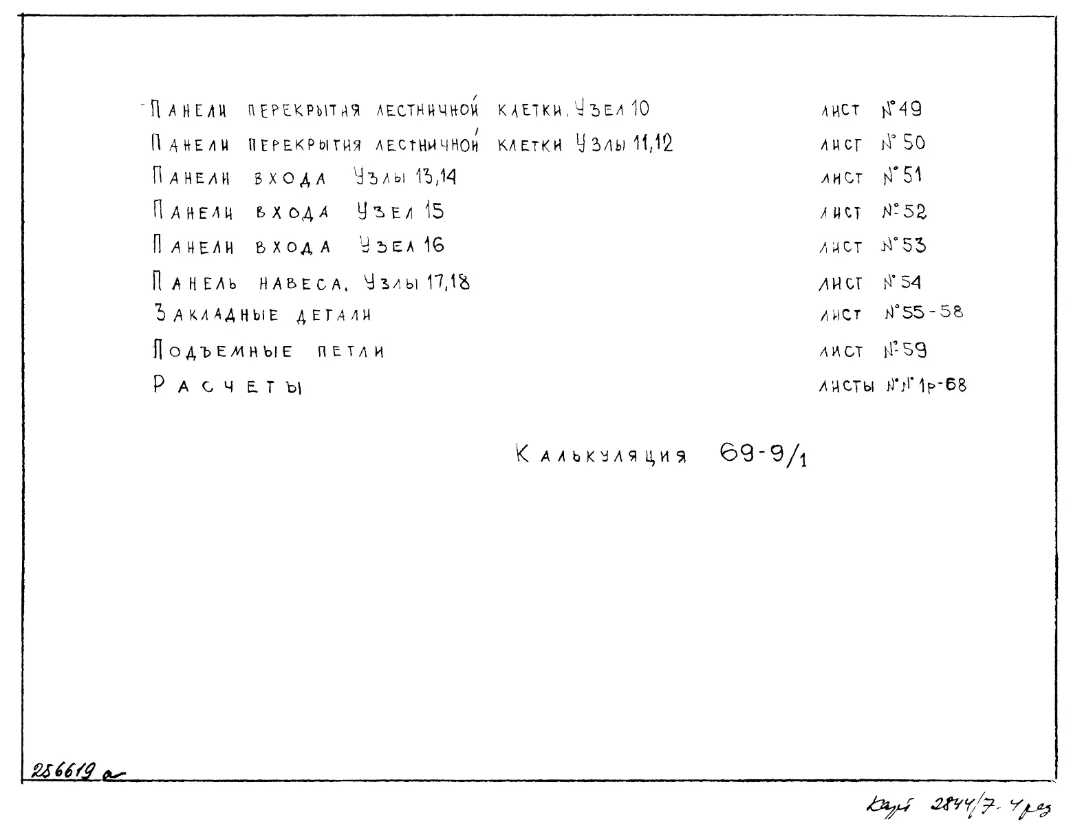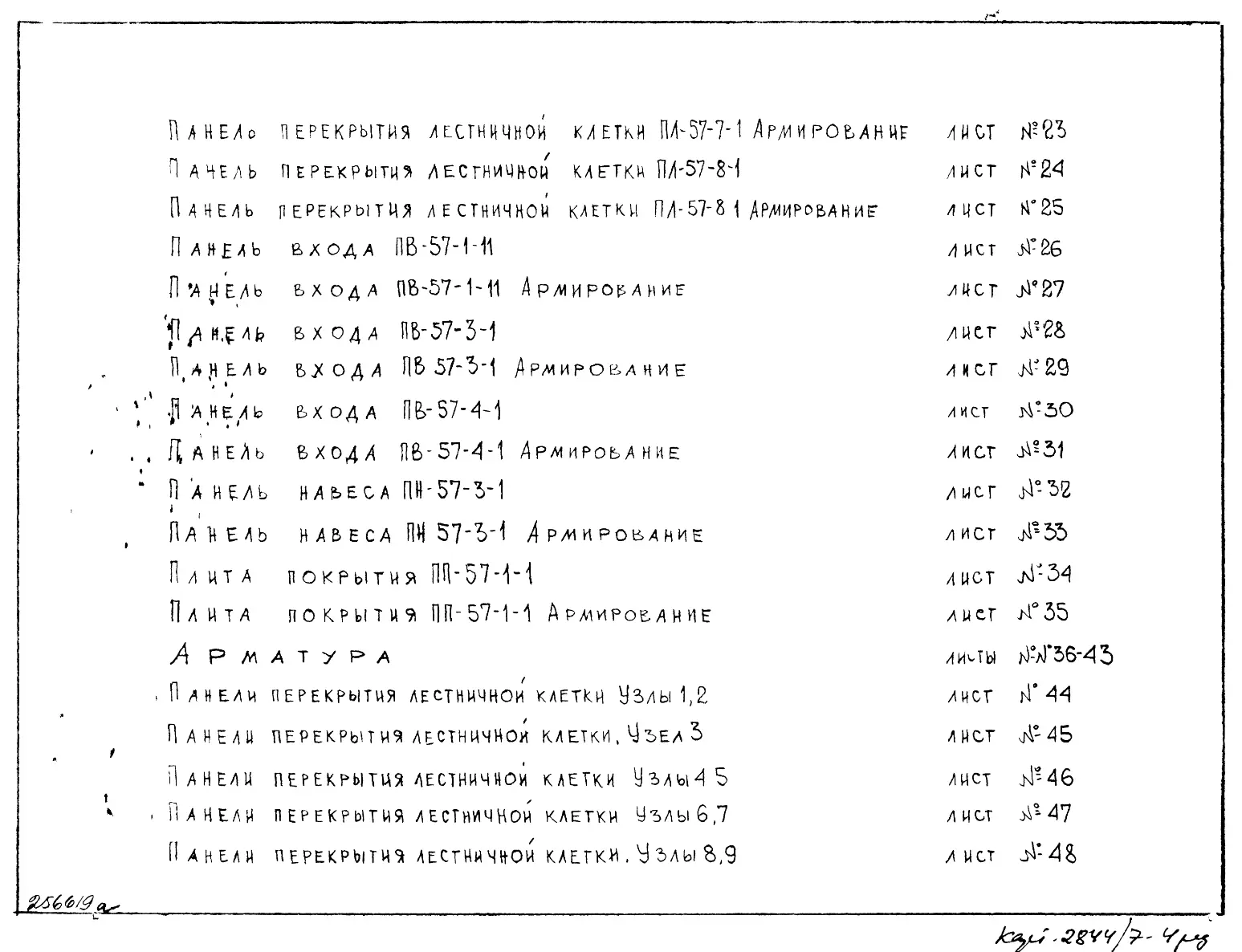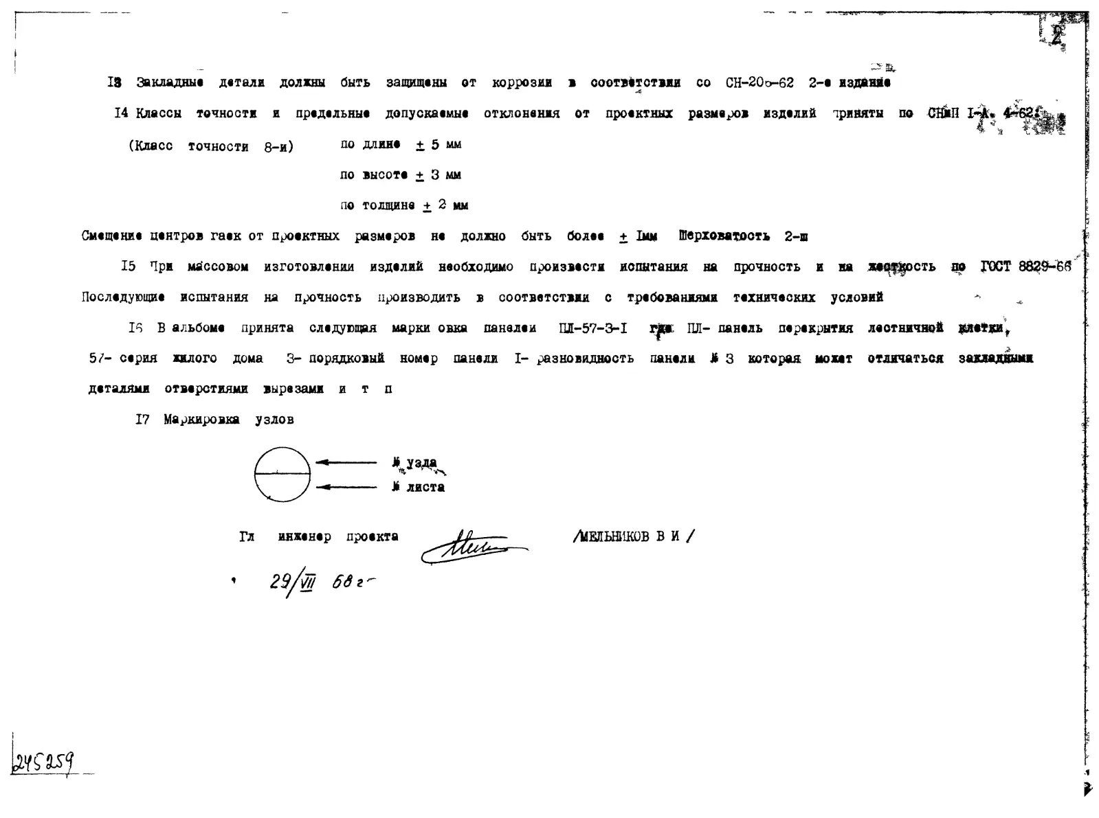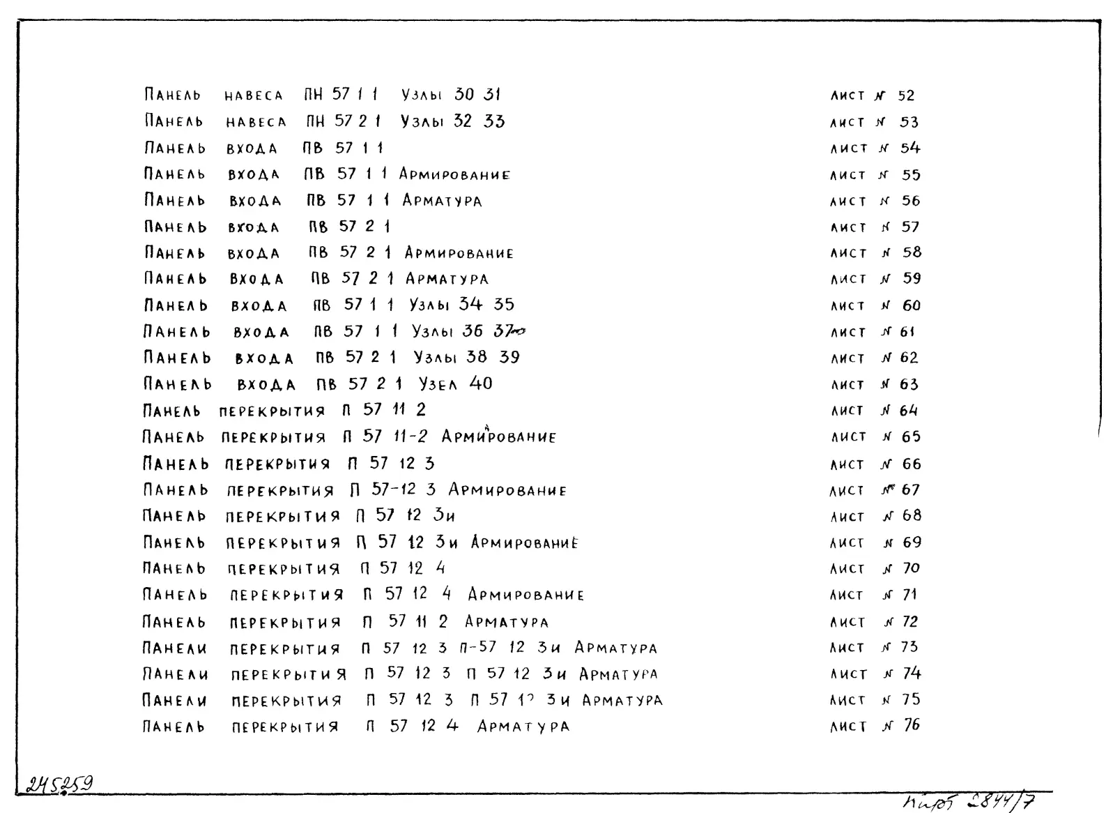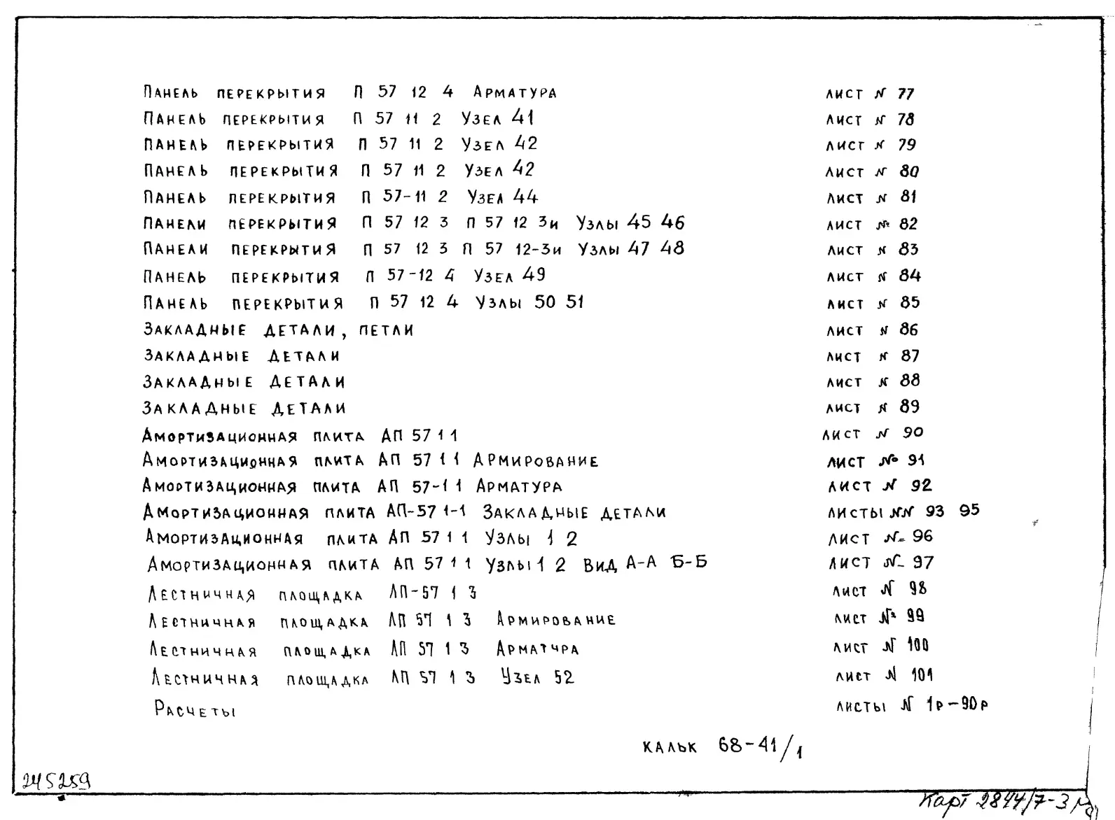 Шифр НК-168-07 Железобетонные изделия для жилых домов серии II-57 лестничные площадки и панели, панель крыльца, навеса, плиты перекрытия лифтовой шахты (1964 г.)