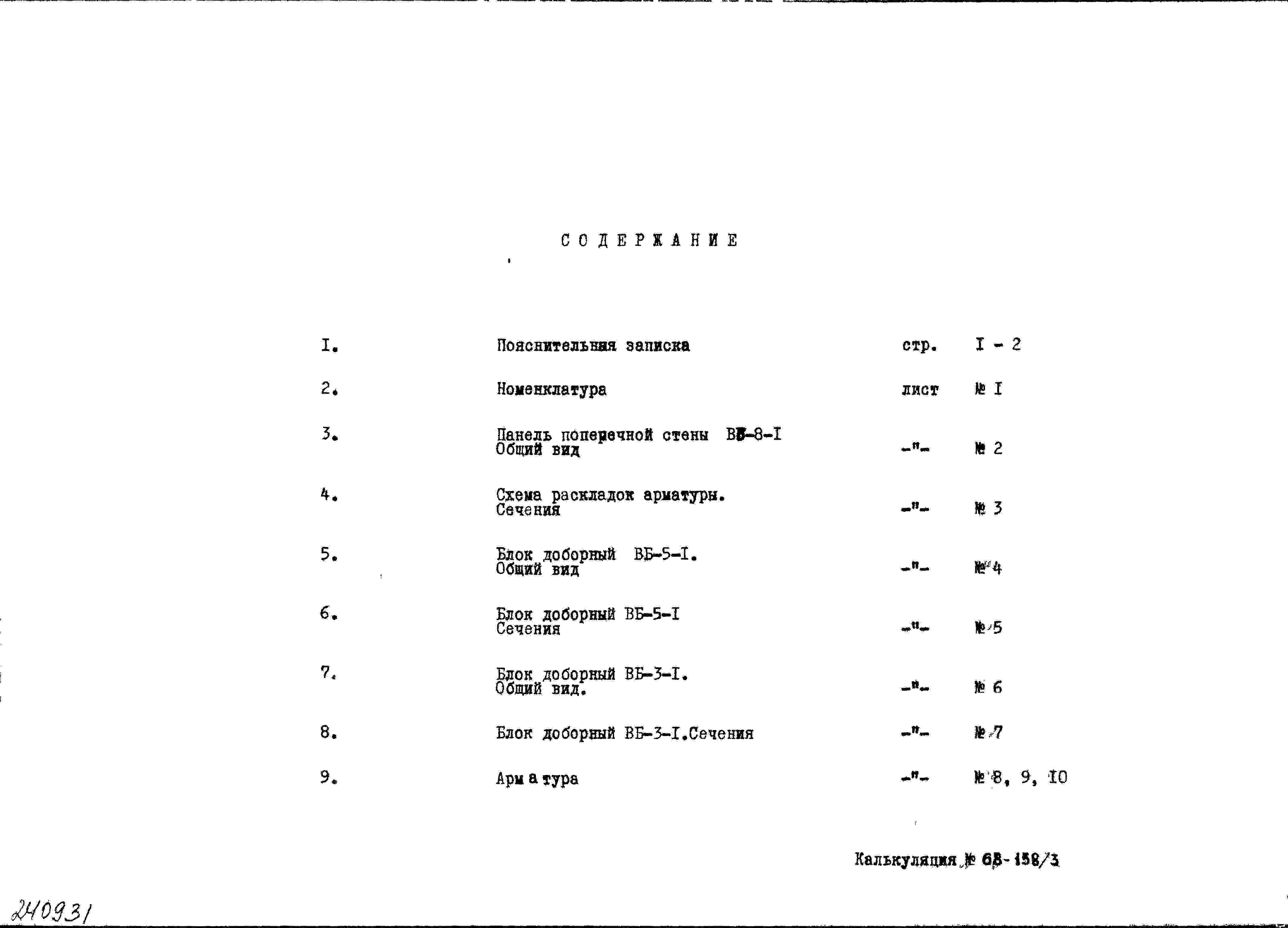Шифр НК-175-18 Железобетонные изделия к 9-этажным жилым домам серии 1-515/9юл (панели внутренних поперечных стен) (1968 г.)