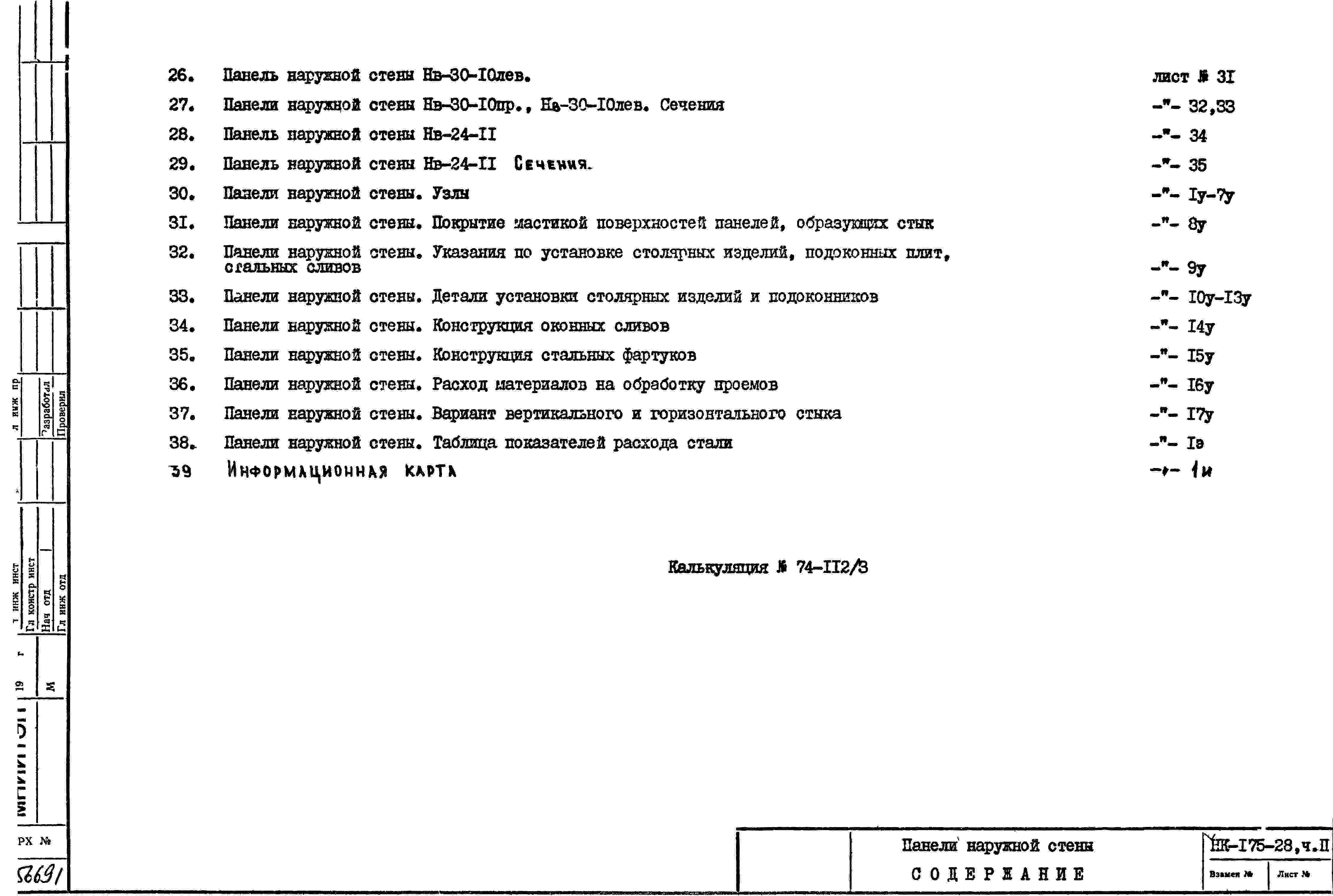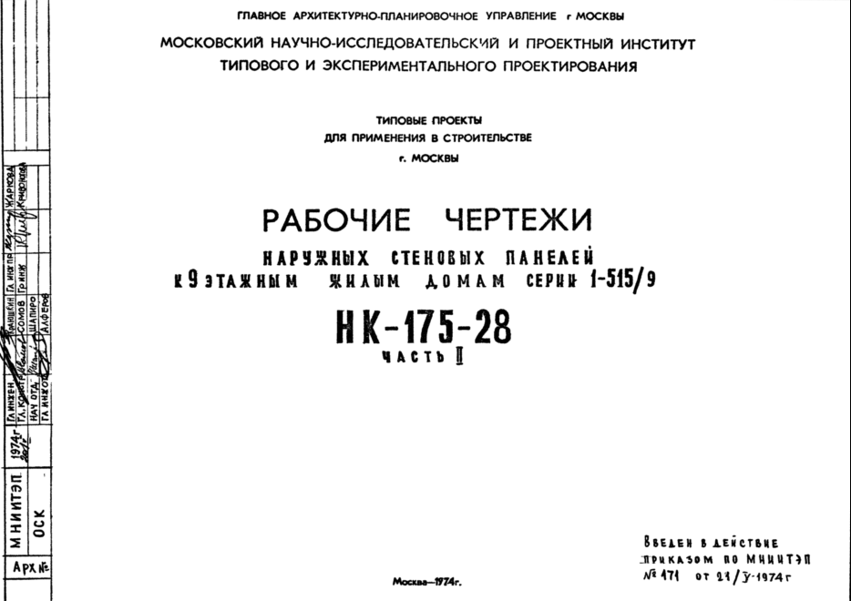 Шифр НК-175-28 Наружные стеновые панели к 9-этажным жилым домам серии 1-515/9 (1974 г.)