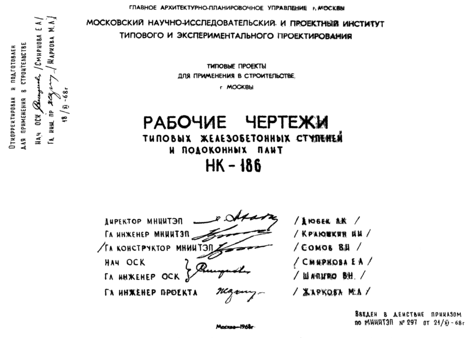 Шифр НК-186 Железобетонные ступени и подоконные плиты (1968 г.)