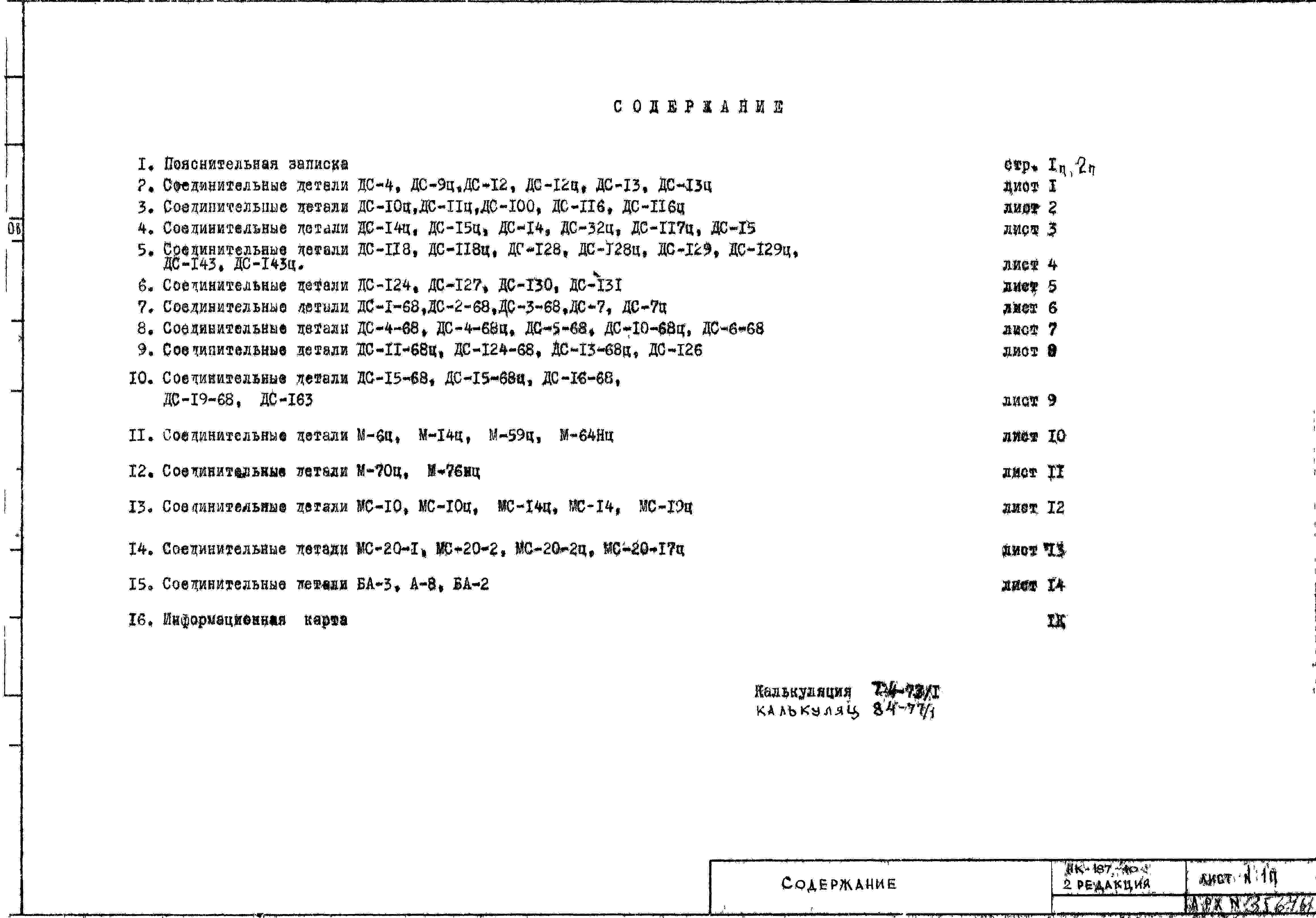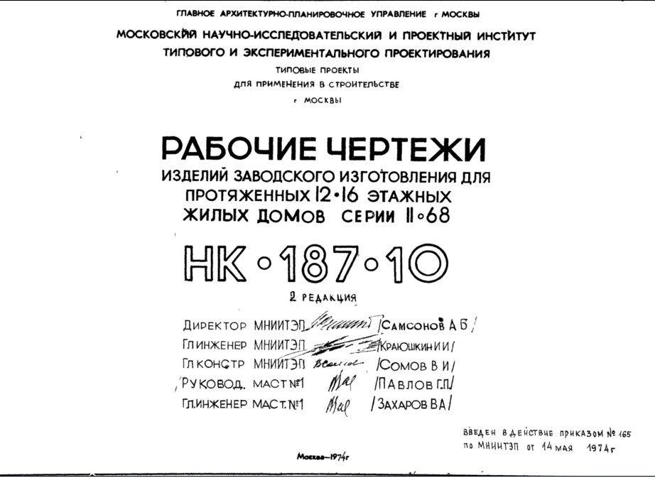 Шифр НК-187-10 Изделия заводского изготовления для протяженных 12-16 этажных жилых домов серии II-68 (1974 г.)