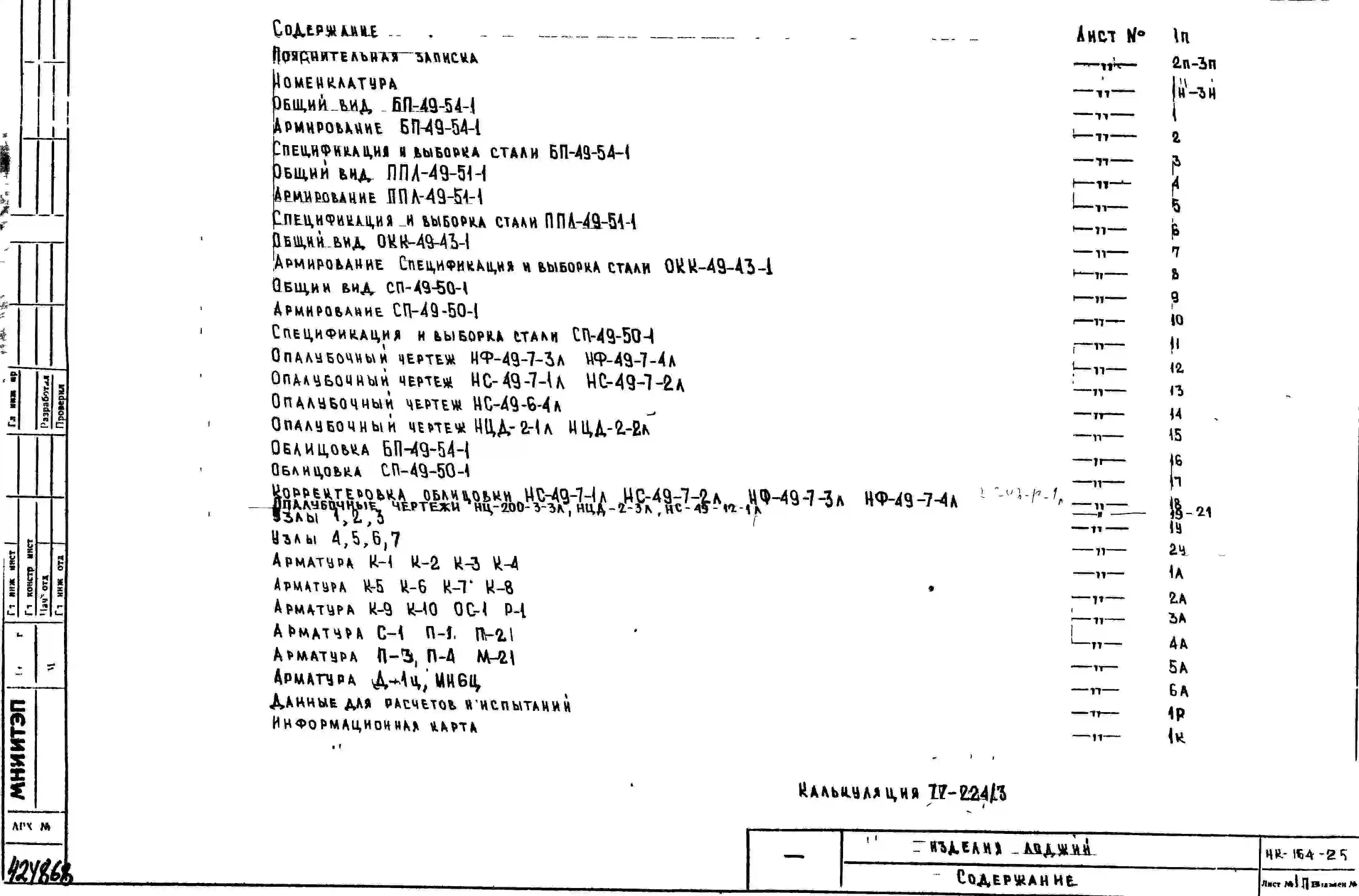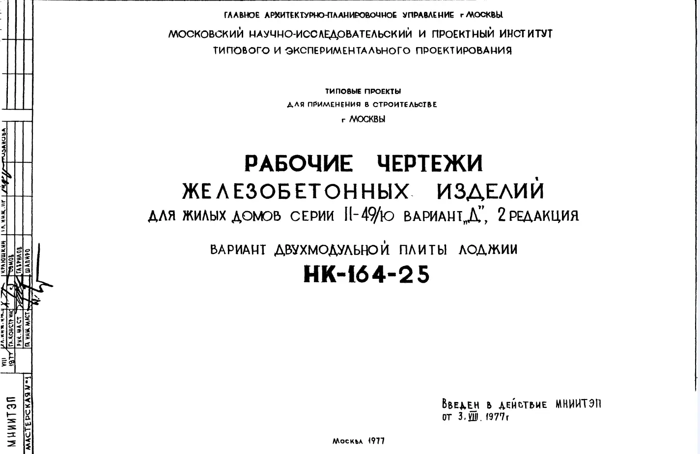 Шифр НК-164-25 Железобетонные изделия для жилых домов серии II-49/Ю вариант "Д" (1977 г.)