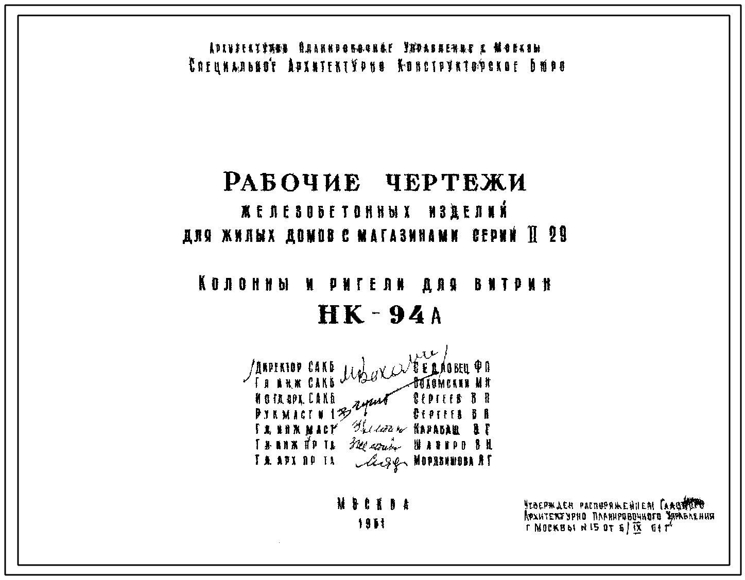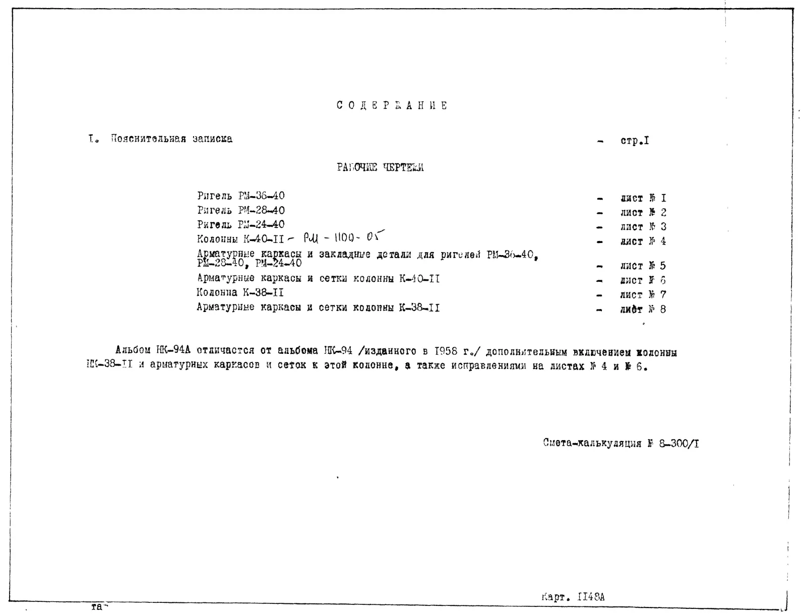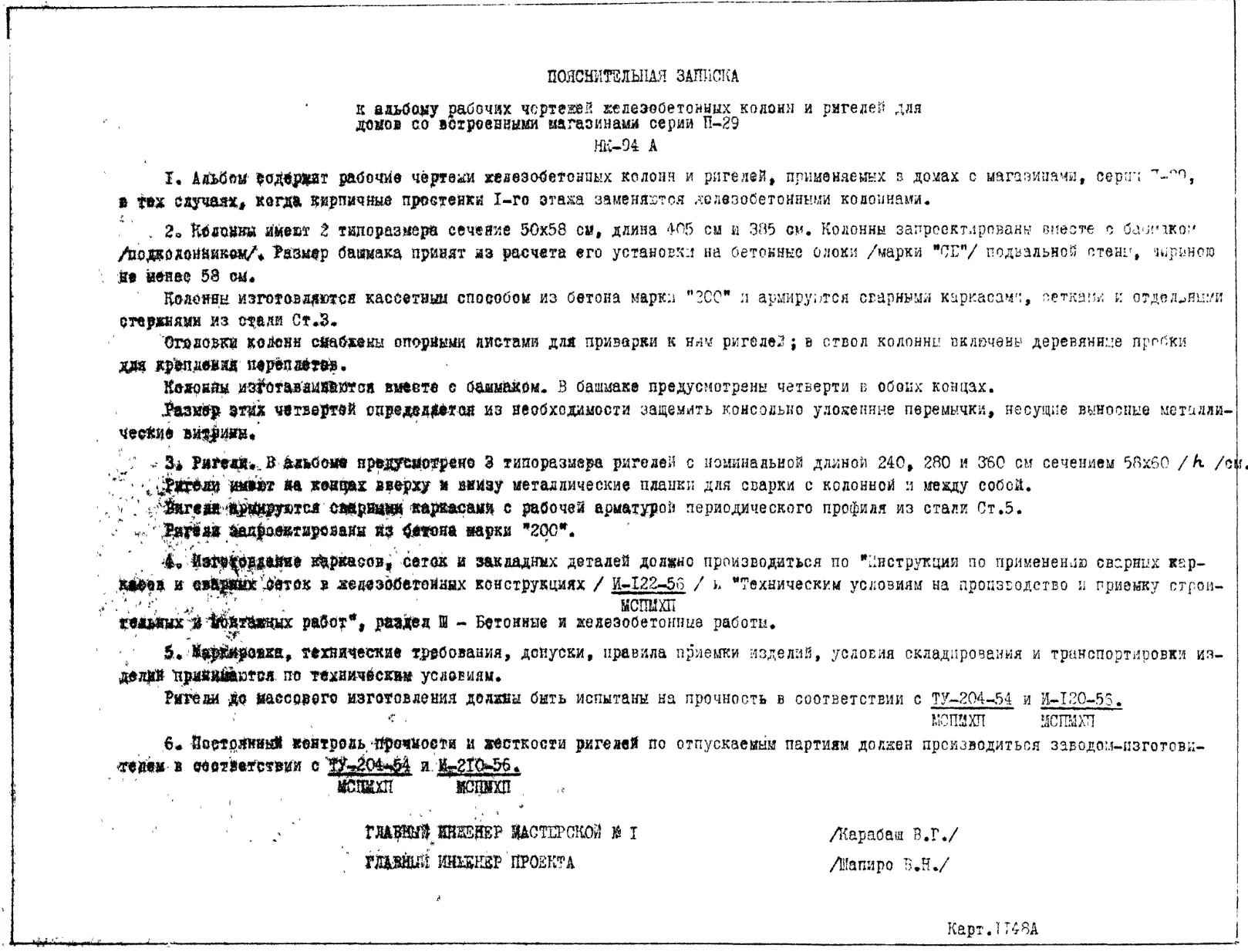 Шифр НК-94А Ригели и колонны. Железобетонные изделия для жилых домов с магазинами серии II-29. Колонны и ригели для витрин (1961 г.)