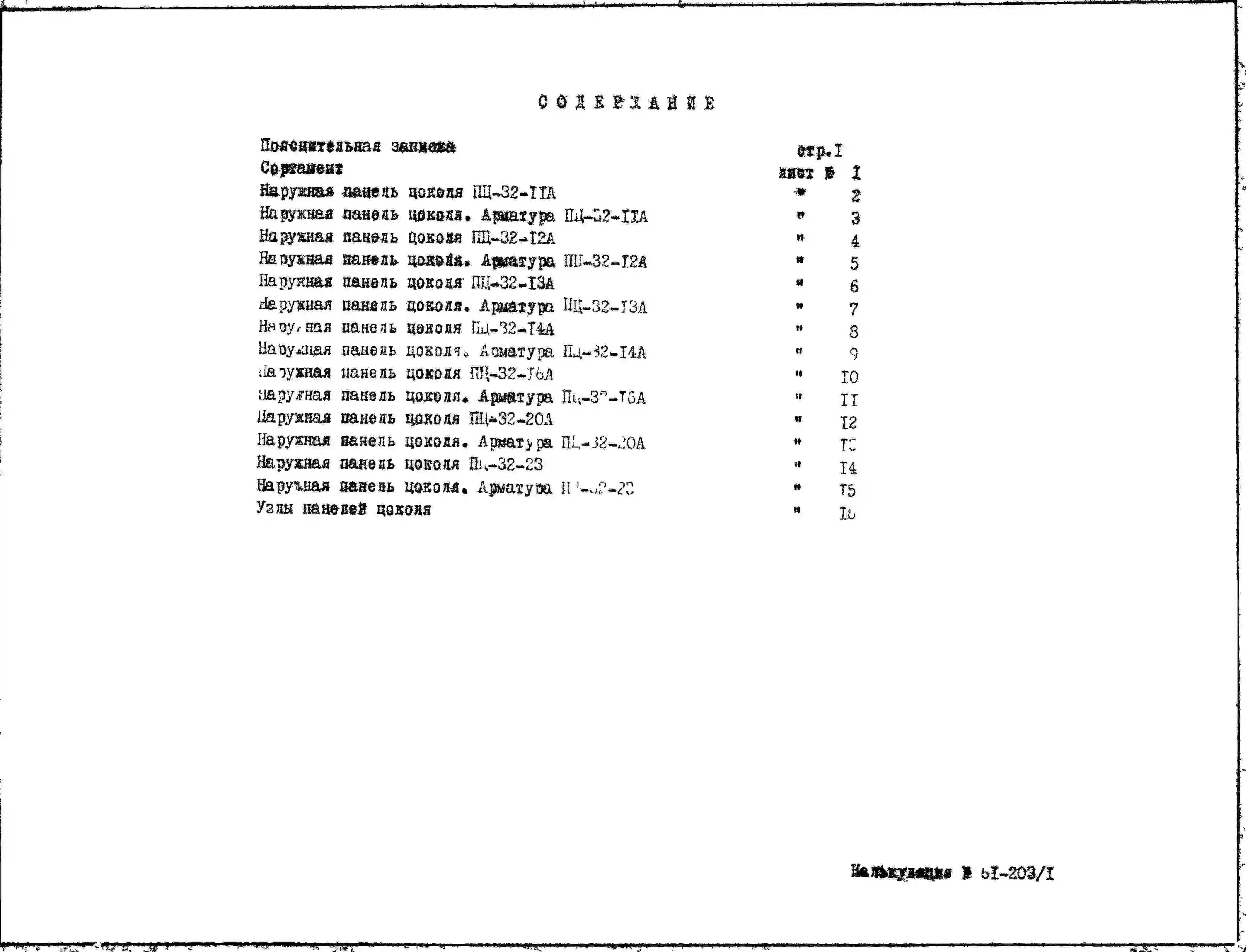 Шифр НК-116-01д Цокольные панели толщиной 32 см унифицированного нулевого цикла (1961 г.)