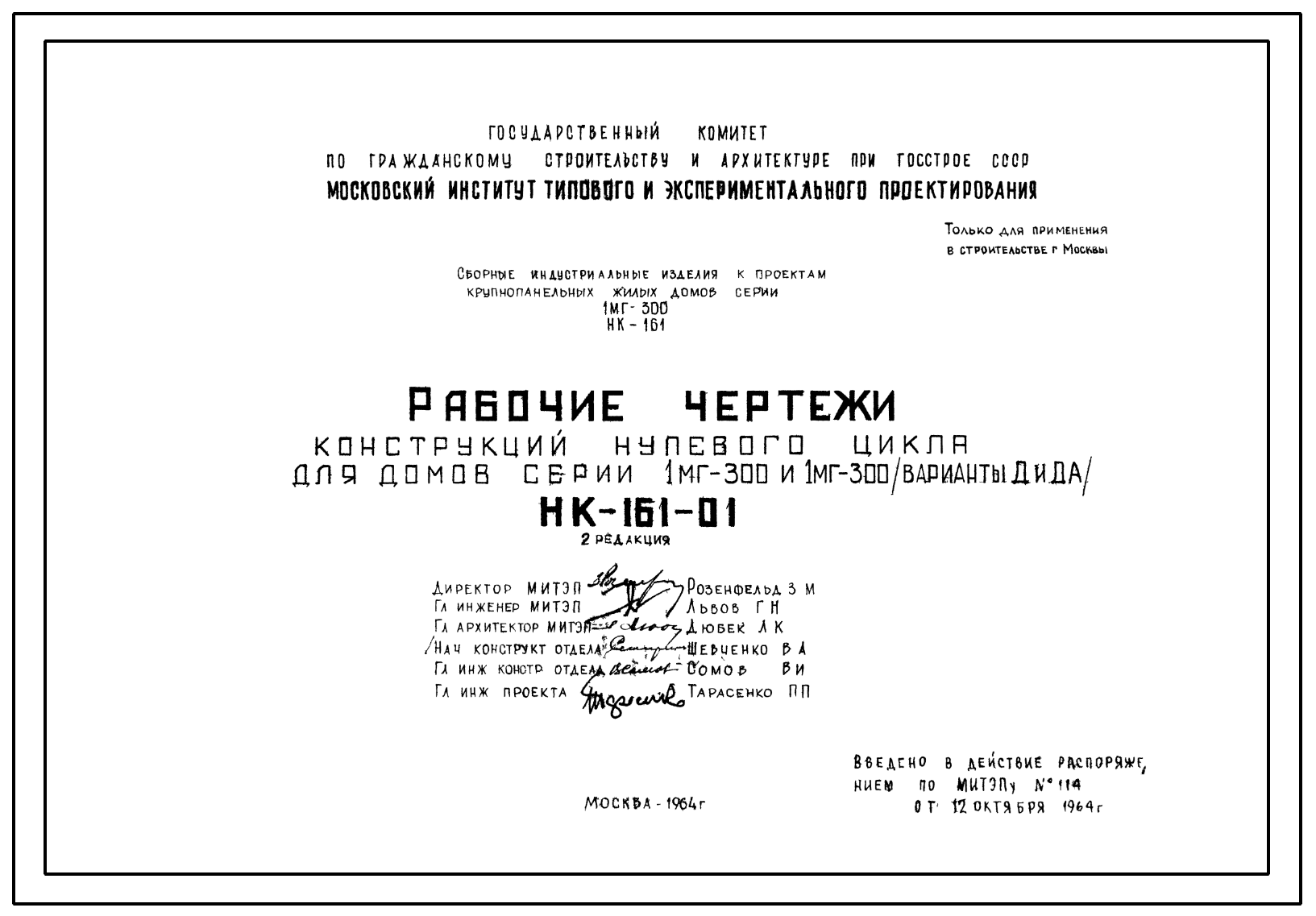 Шифр НК-161-01 Конструкции нулевого цикла для домов серии 1мг-300 и 1мг-300 (варианты Д и ДА) (1964 г.)