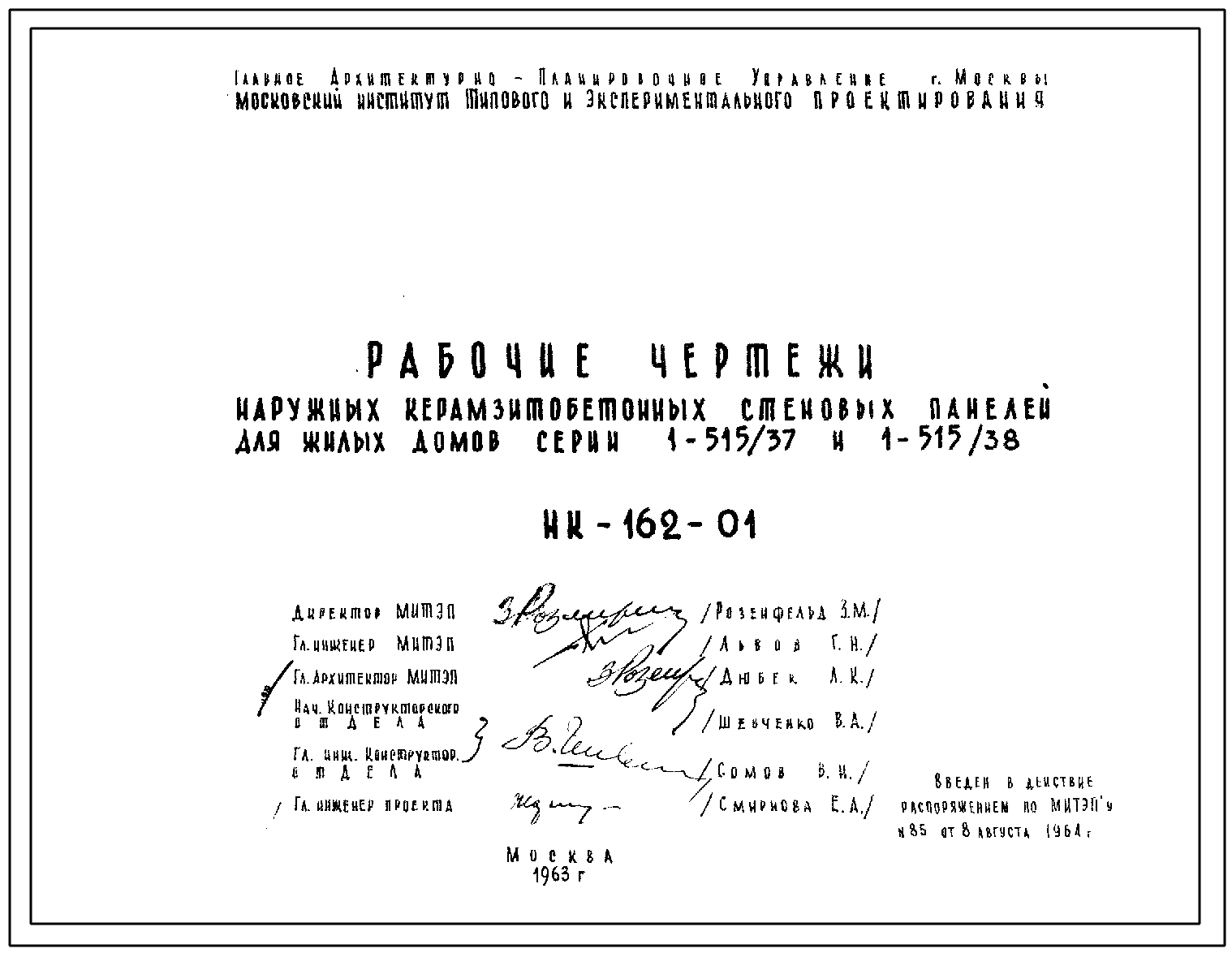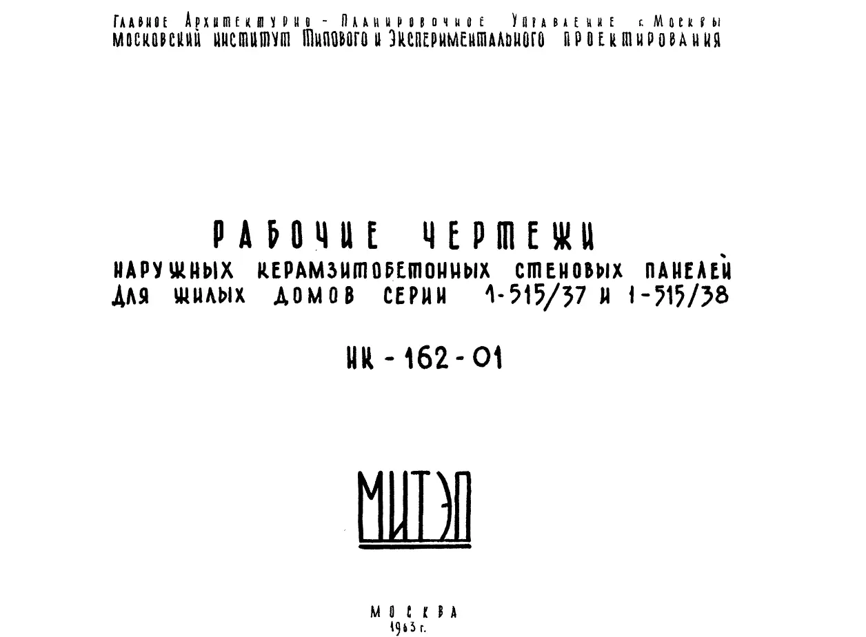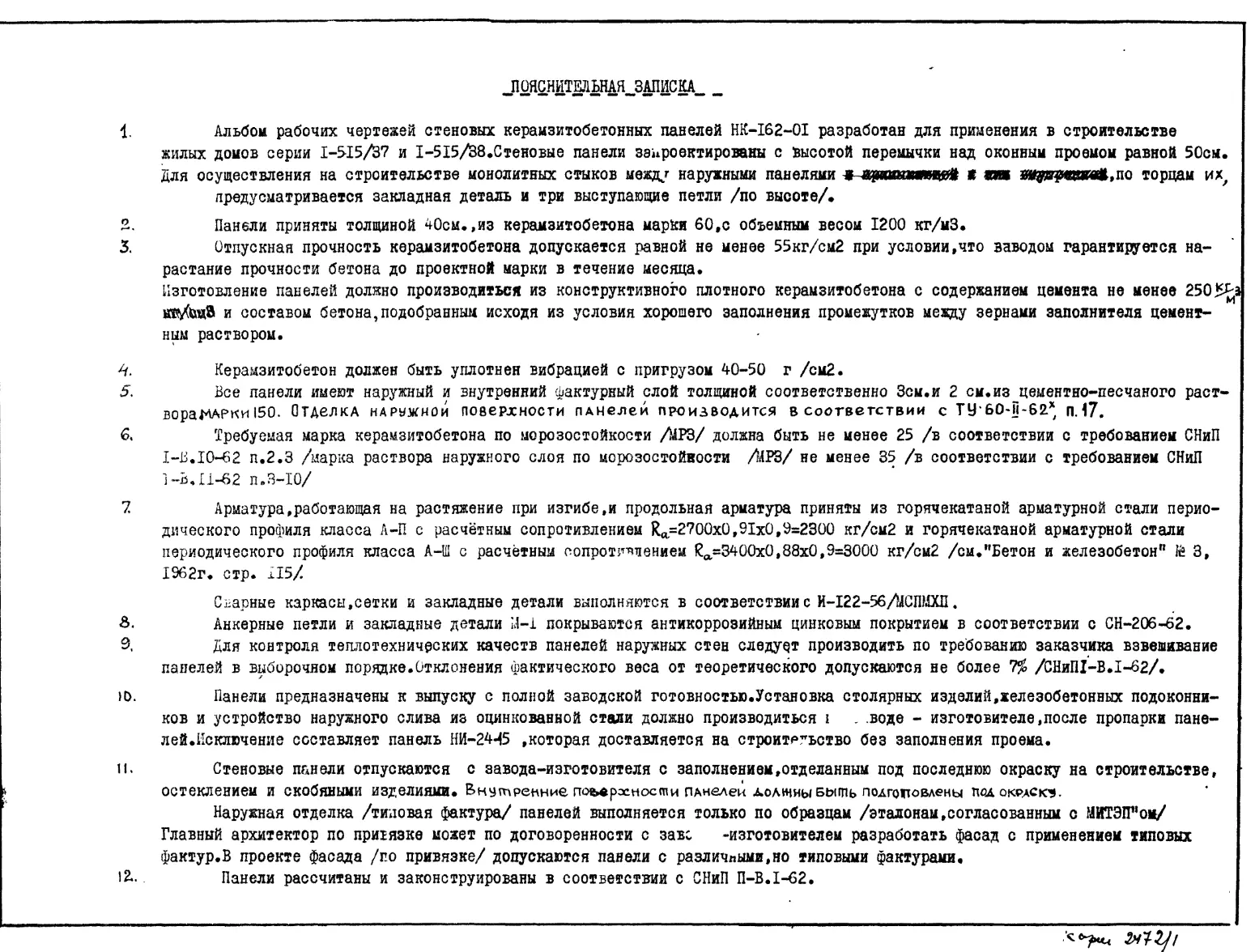 Шифр НК-162-01 Наружные керамзитобетонные стеновые панели для жилых домов серии 1-515/37 и 1-515/38 (1963 г.)