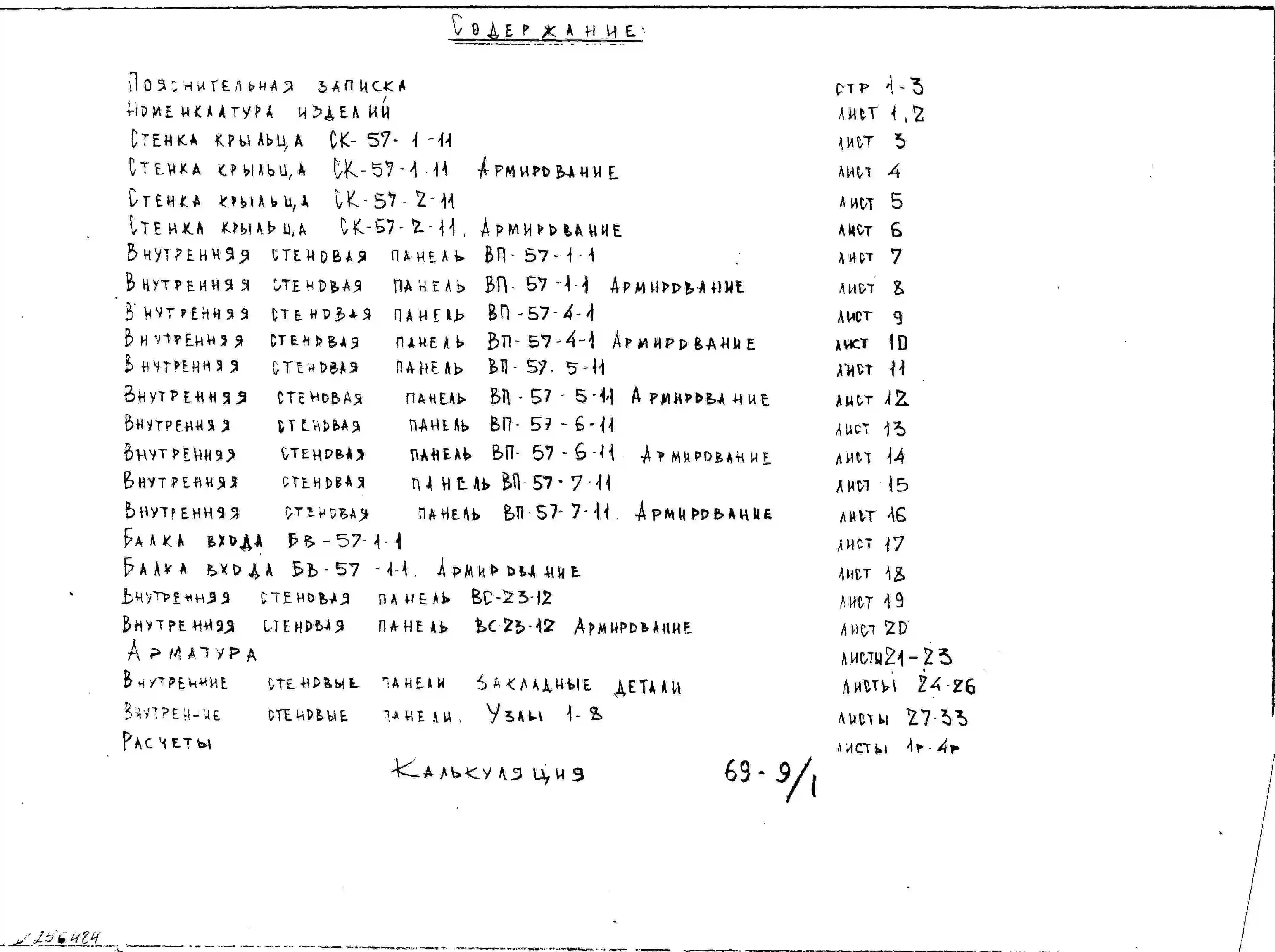 Шифр НК-168-05 Панели внутренних стен надземной части для жилых домов серии II-57/9-12 (1969 г.)