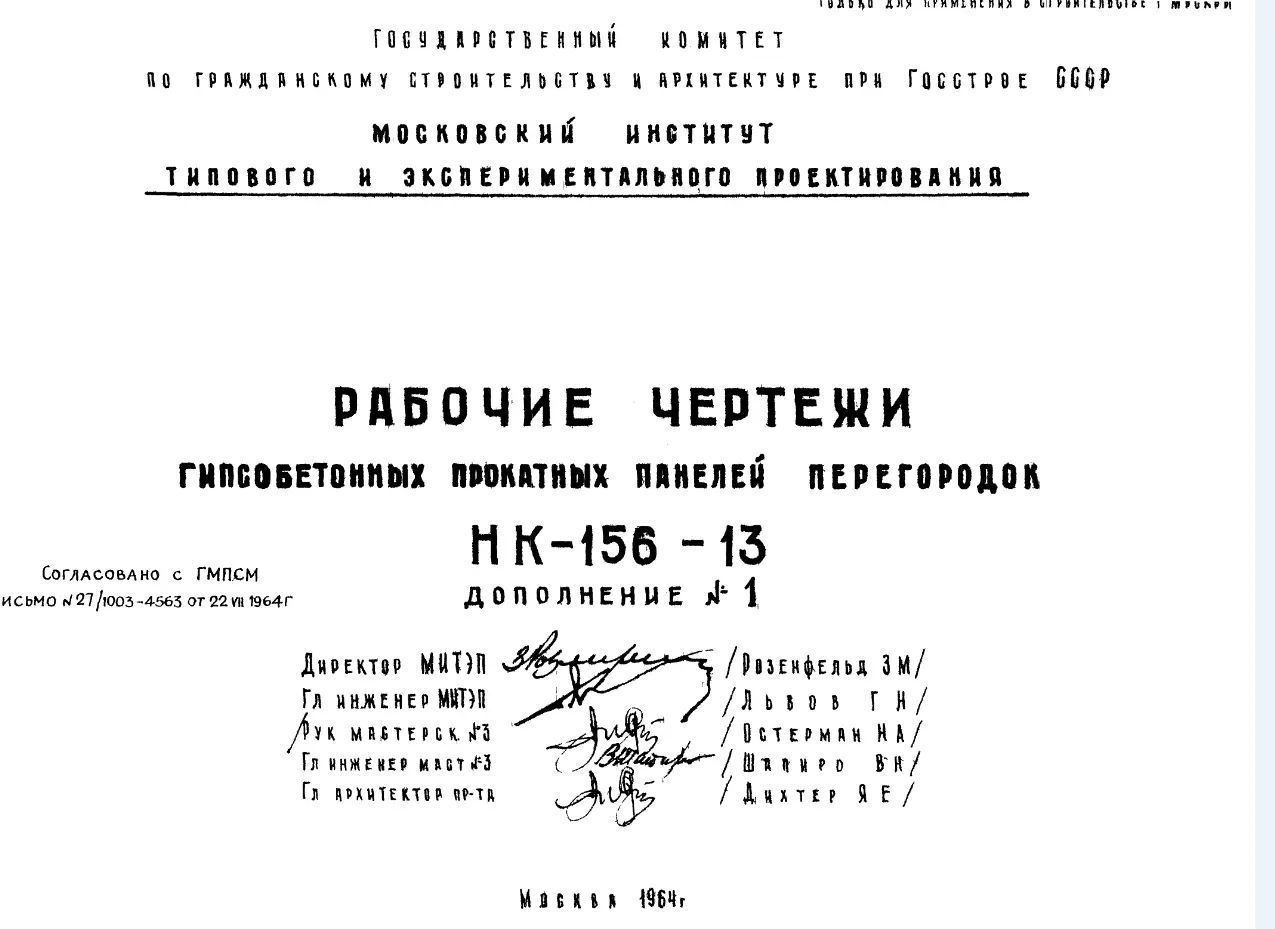 Шифр НК-156-13 Гипсобетонные прокатные панели перегородок (1964 г.)