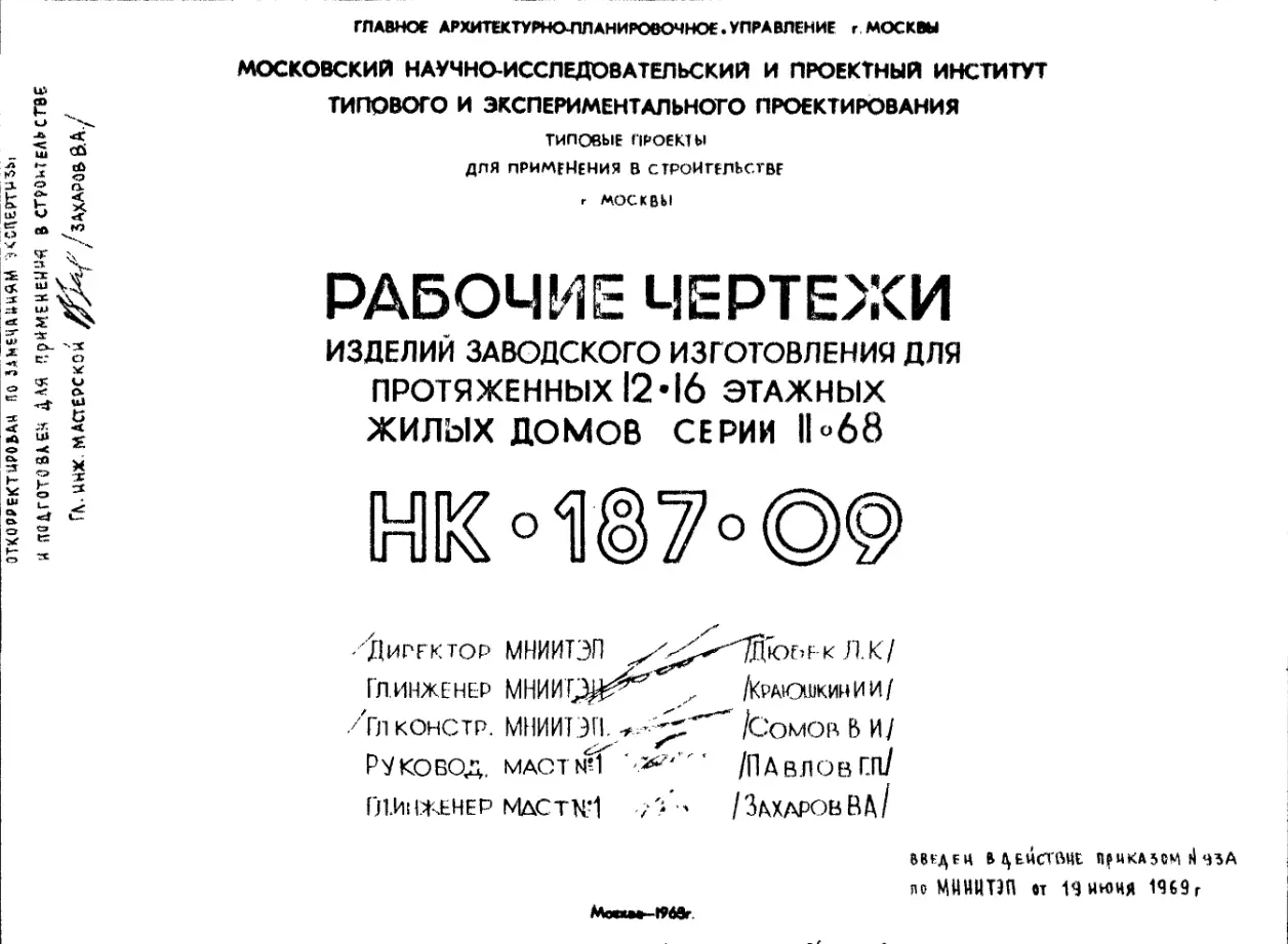 Шифр НК-187-09 Изделия заводского изготовления для протяженных 12-16 этажных жилых домов серии II-68 (1968 г.)
