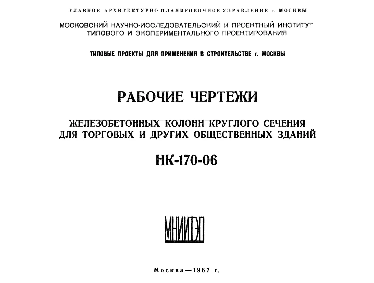 Шифр НК-170-06 Железобетонные колонны круглого сечения для торговых и других общественных зданий (1967 г.)