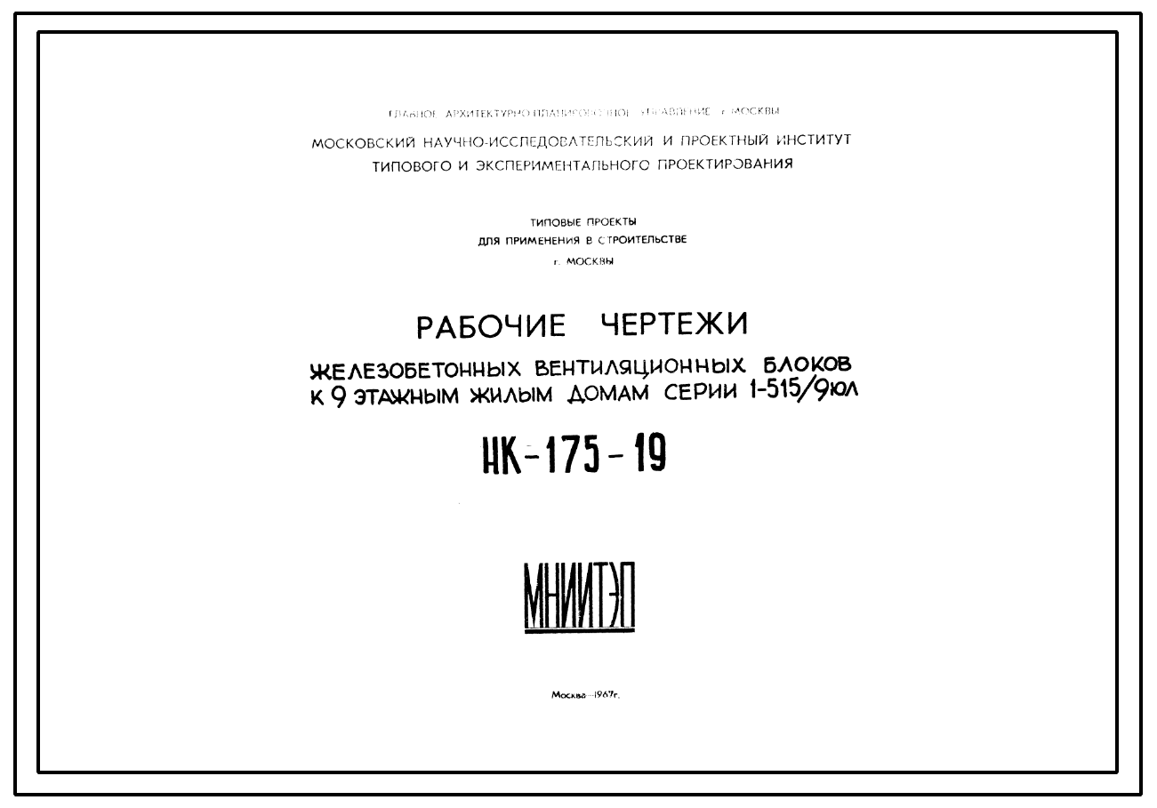 Шифр НК-175-19 Железобетонные вентиляционные блоки к 9-ти этажным домам серии 1-515/9юл (1967 г.)