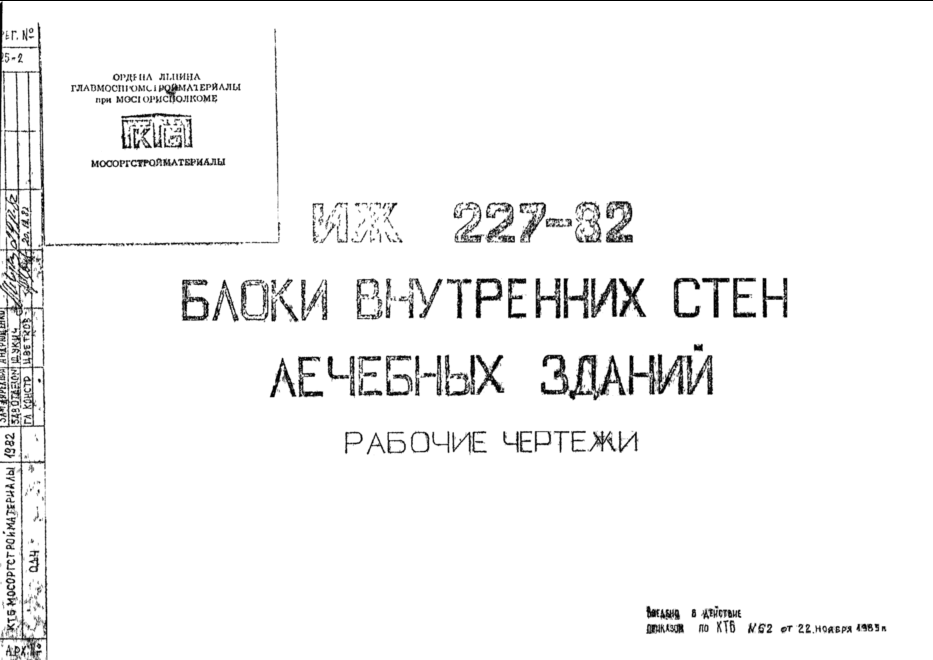 Шифр ИЖ 227-82 Блоки внутренних стен лечебных зданий (1982 г.)