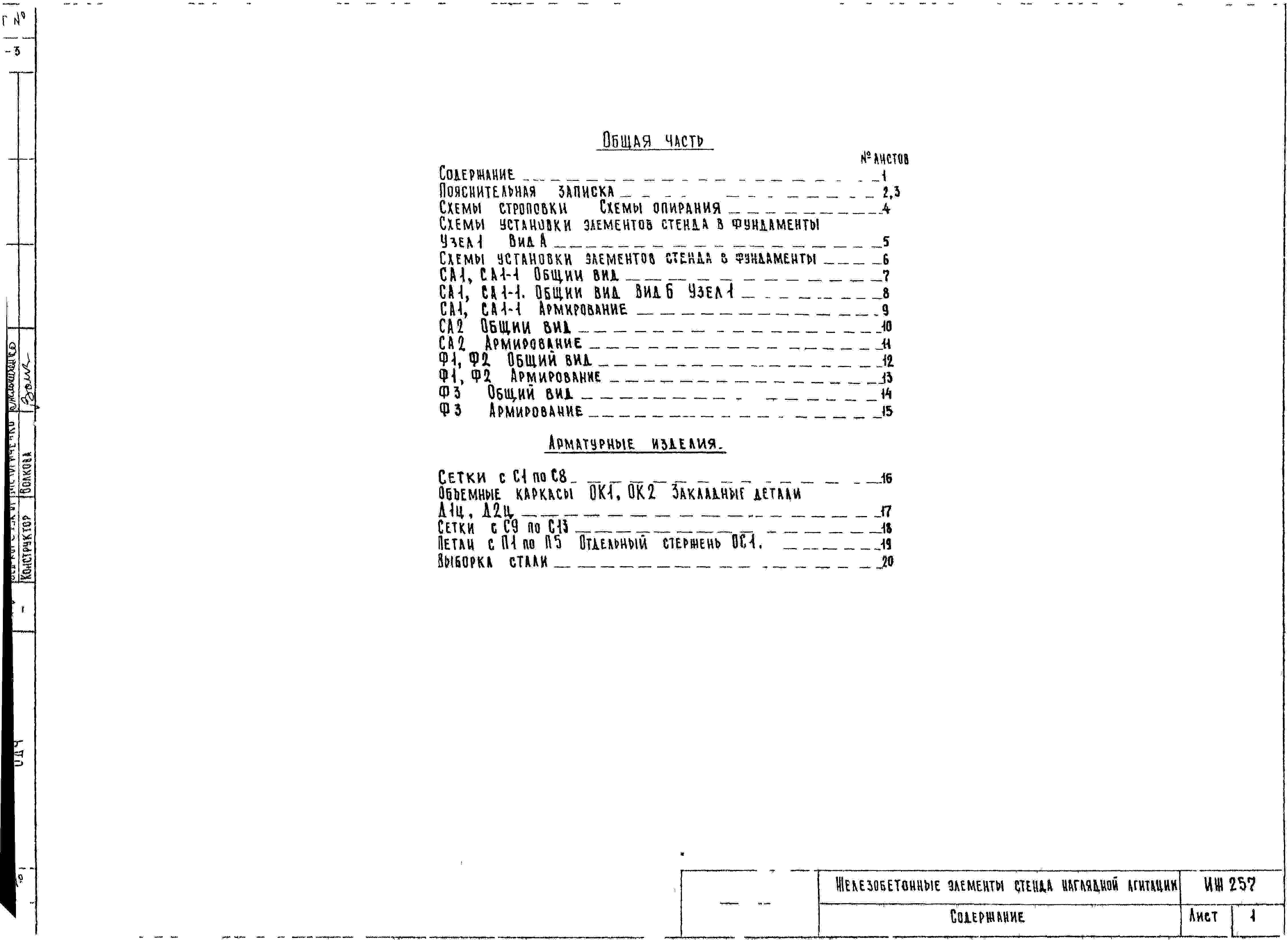 Шифр ИЖ 257 Железобетонные элементы стенда наглядной агитации (1980 г.)
