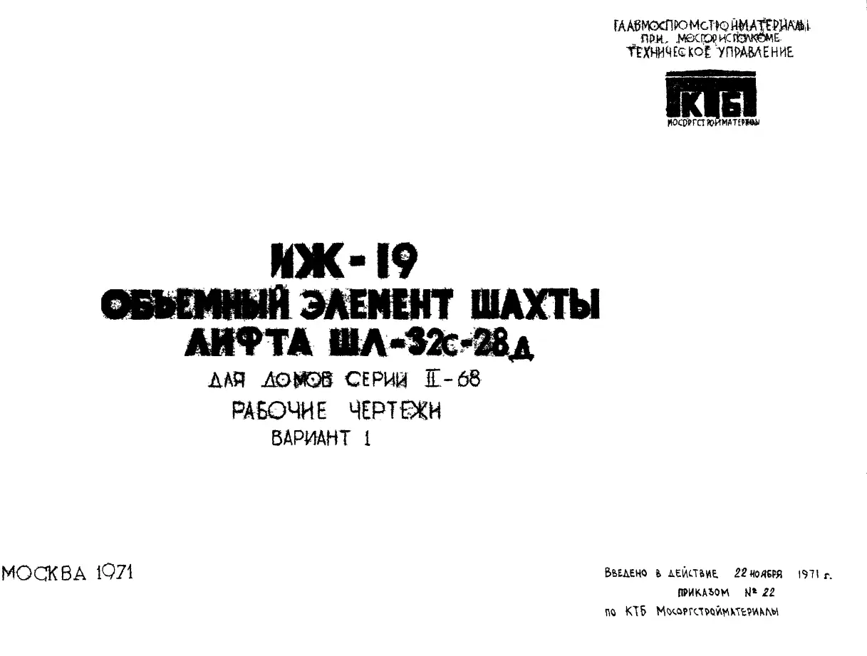 Шифр ИЖ 19 Объемный элемент шахты лифта ШЛ-32с-28д, для домов серии II-68 (1971 г.)