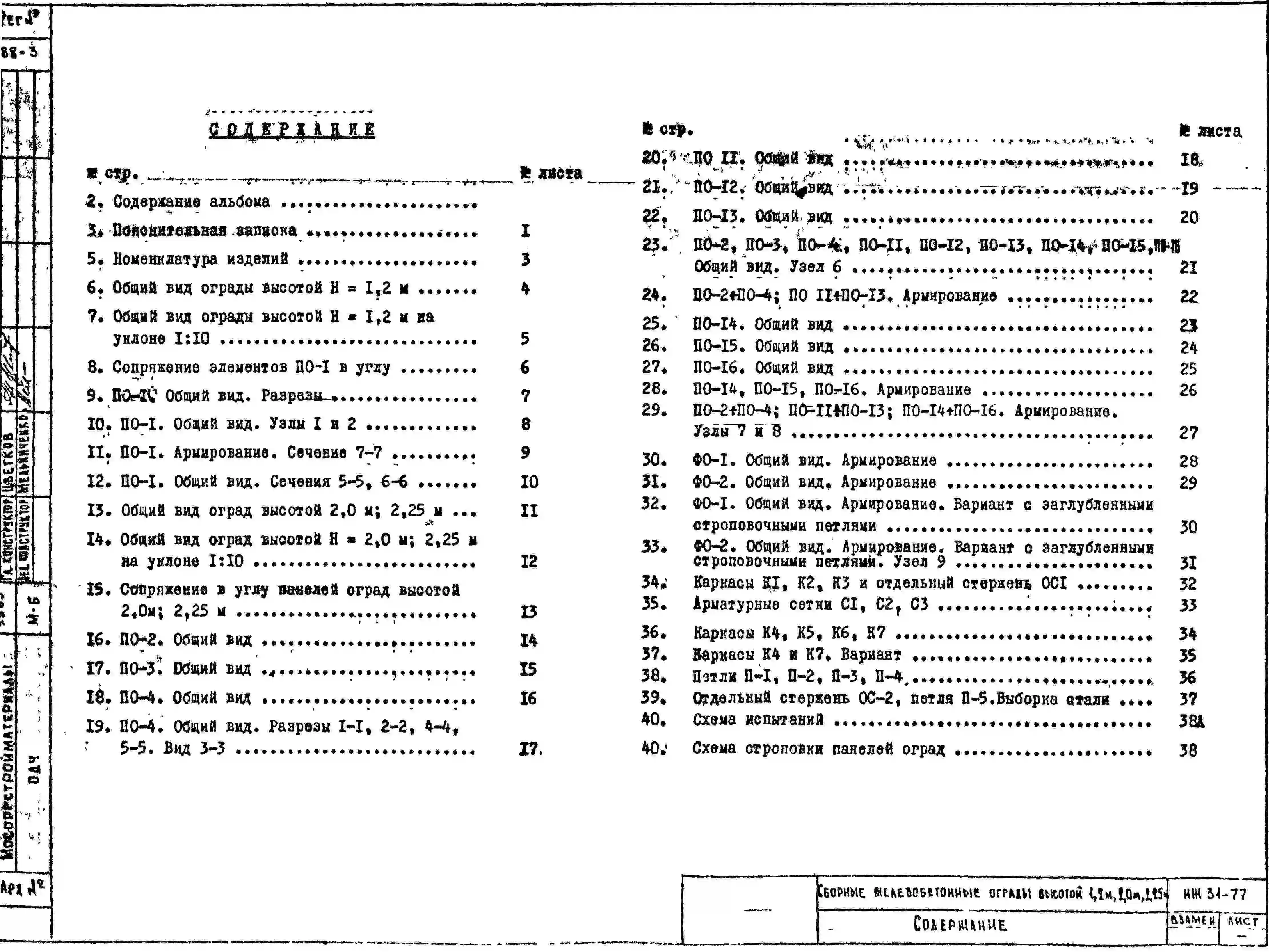 Шифр ИЖ 31-77 Сборные железобетонные ограды высотой 1,2; 2,0 и 2,25 м (1977 г.)