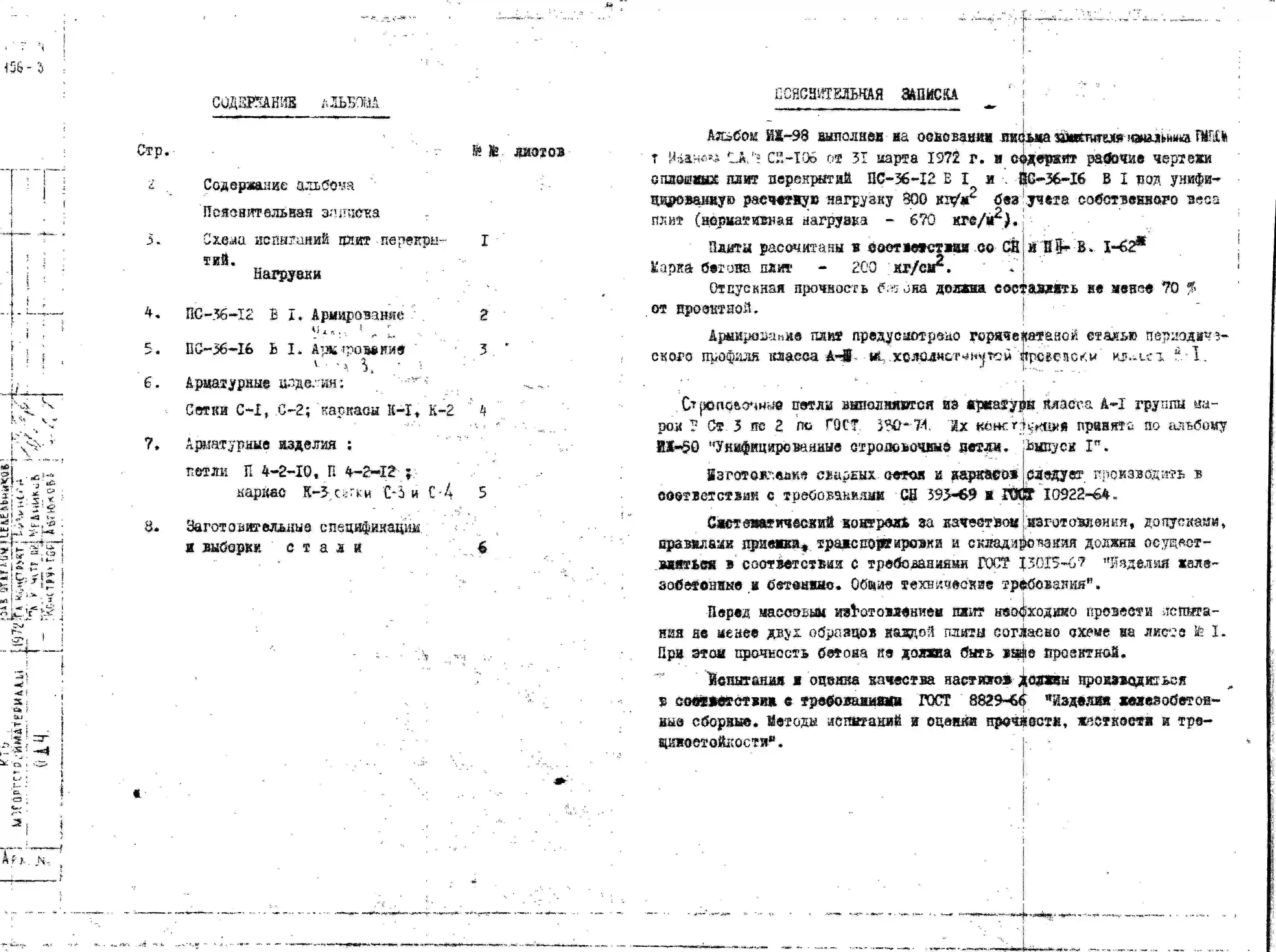 Шифр ИЖ 98 Плиты перекрытия сплошного сечения (1972 г.)