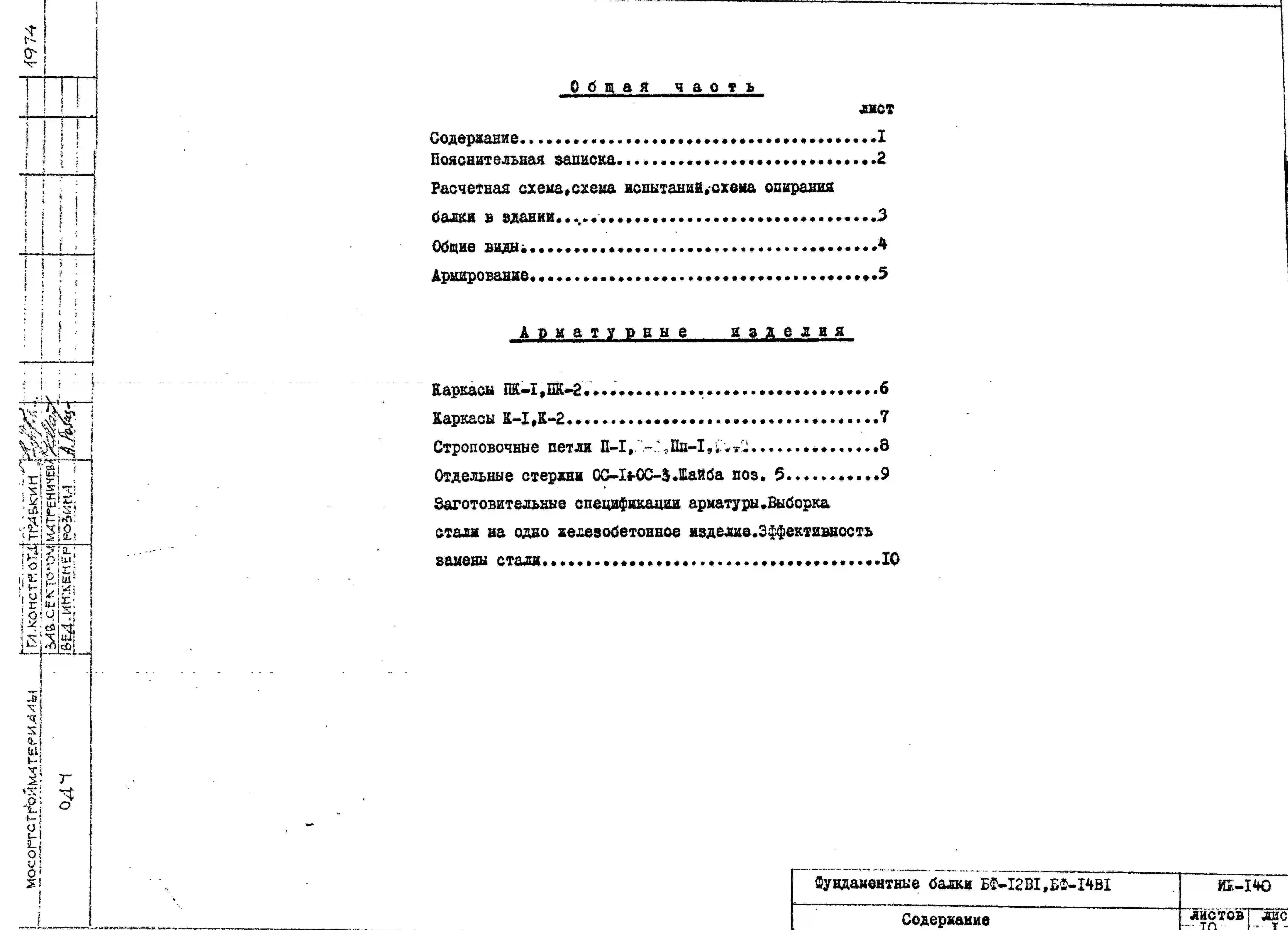 Шифр ИЖ 140 Фундаментные балки БФ-12В1, БФ-14В1 (1974 г.)