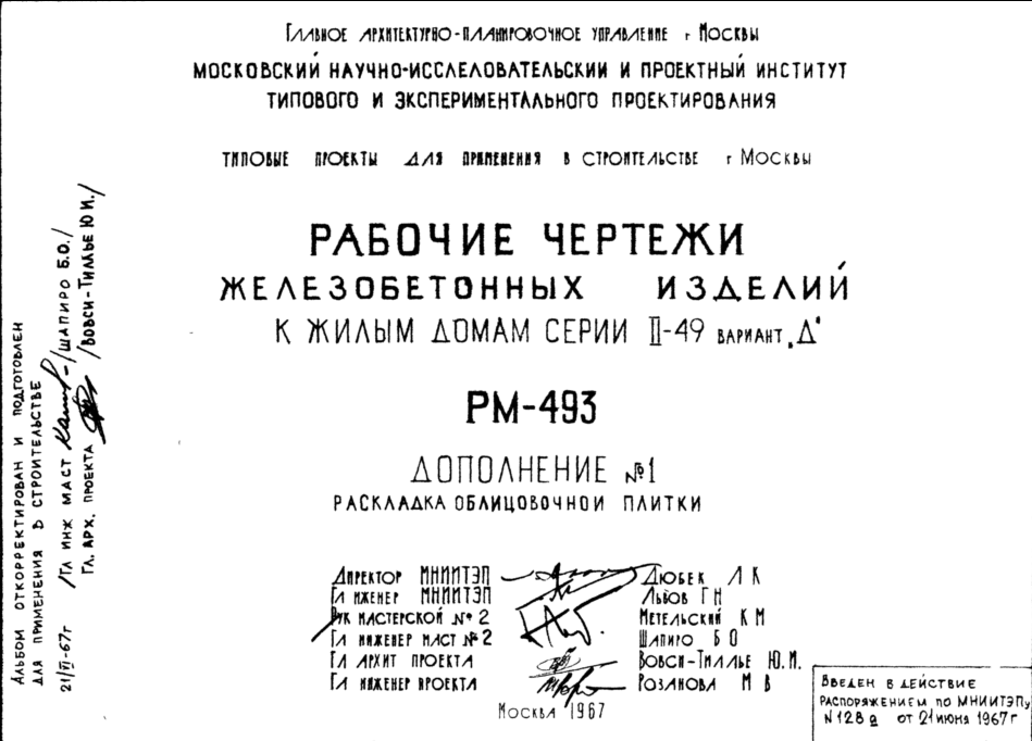 Шифр РМ-493 Железобетонные изделия к жилым домам серии II-49 вариант "Д" (1967 г.)