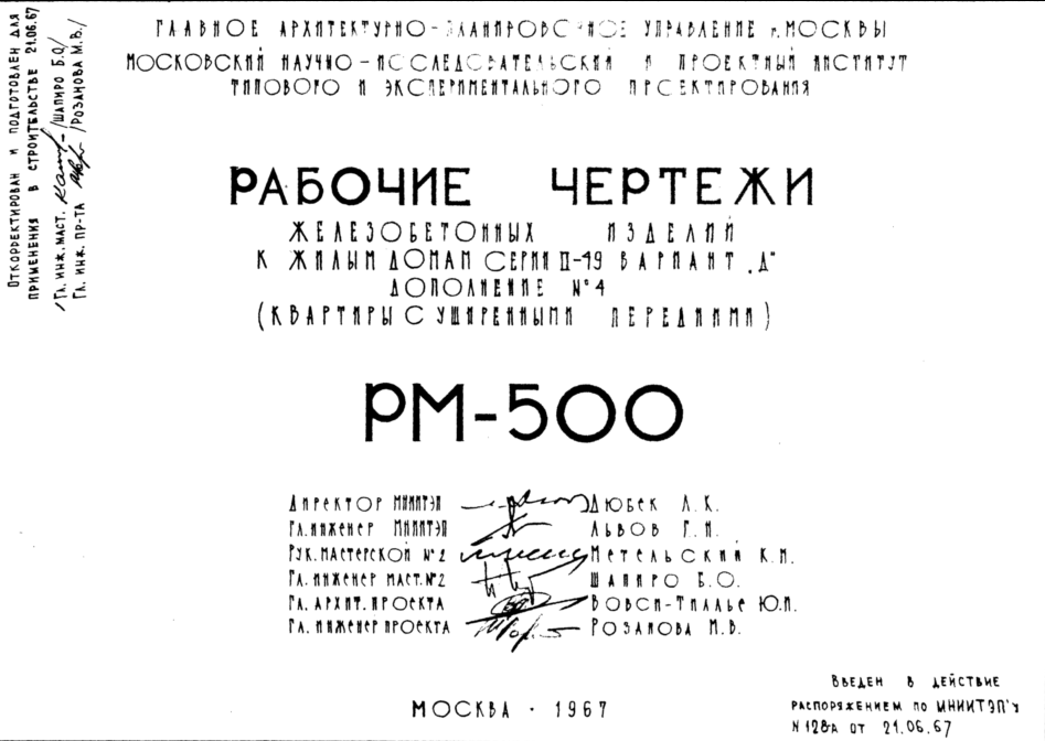 Шифр РМ-500 Железобетонные изделия к жилым домам серии II-49 вариант "Д" (квартиры с уширенными передними)(1967 г.)