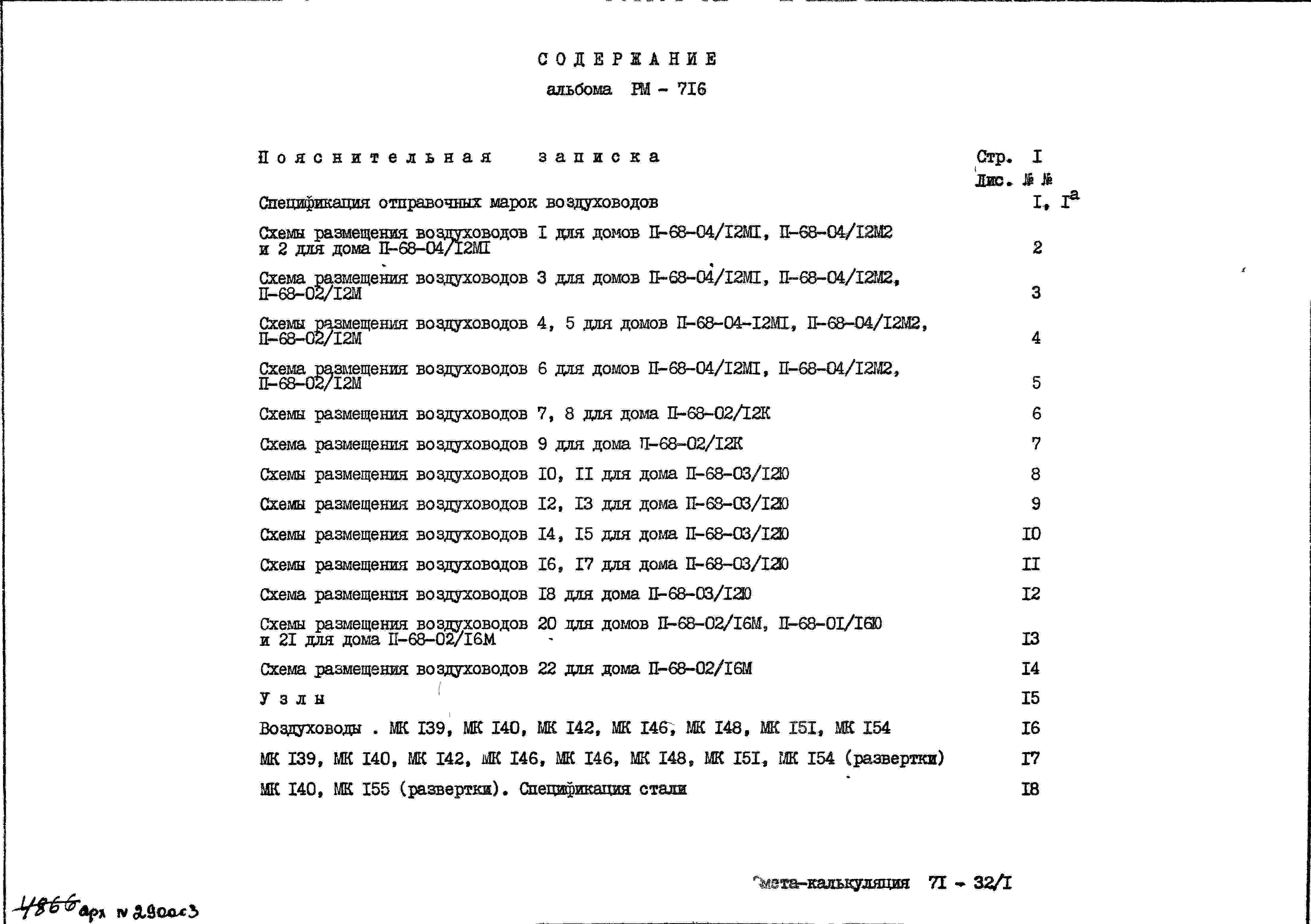 Шифр РМ-716 Металлические изделия и детали установки воздуховодов для 12 и 16 этажных домов серии II-68 (1971 г.)