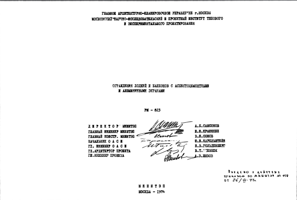 Шифр РМ-823 Ограждения лоджий и балконов с асбестоцементными и алюминиевыми экранами (1974 г.)