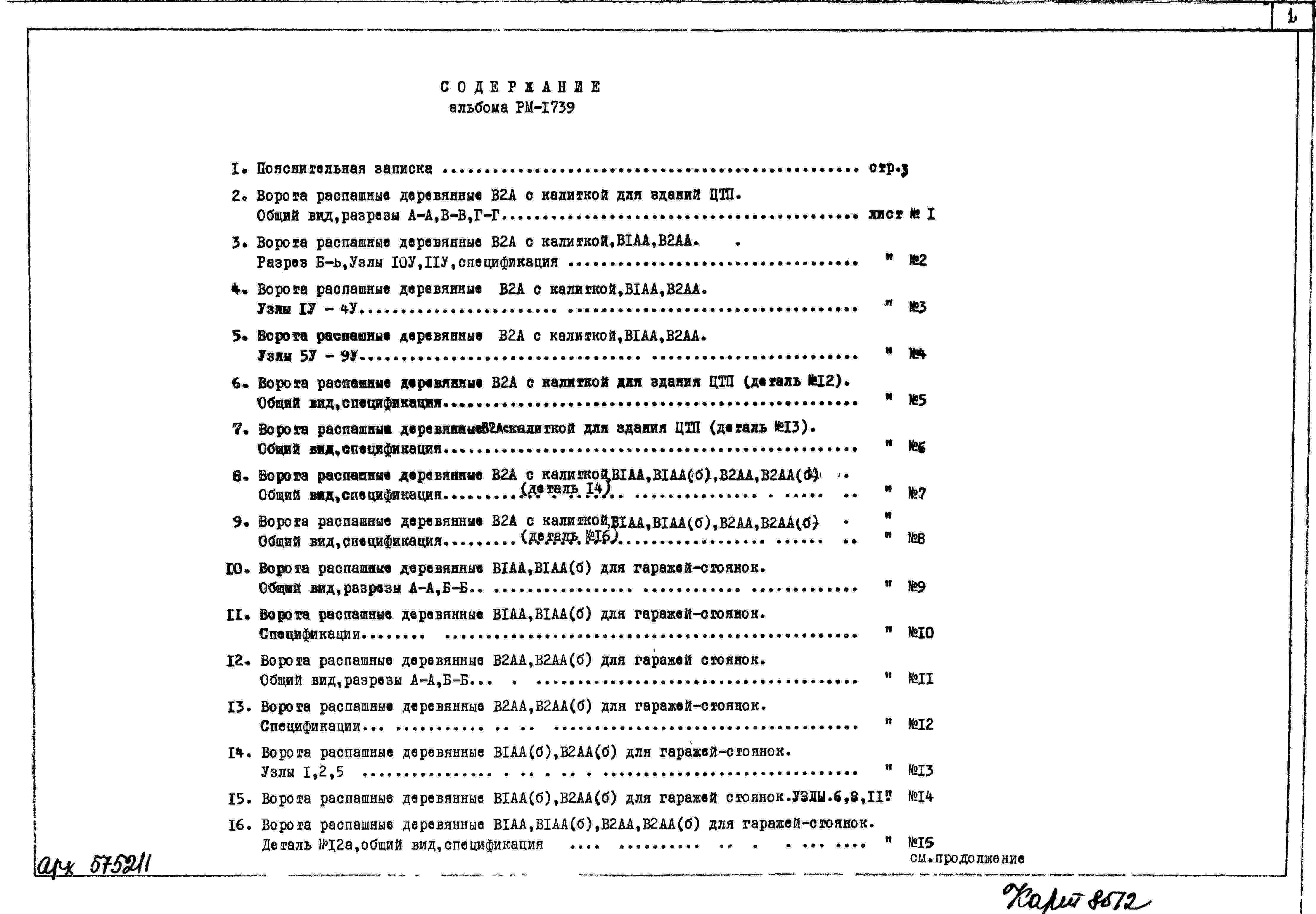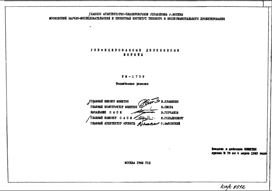 Шифр РМ-1739 Унифицированные деревянные ворота (1982 г.)