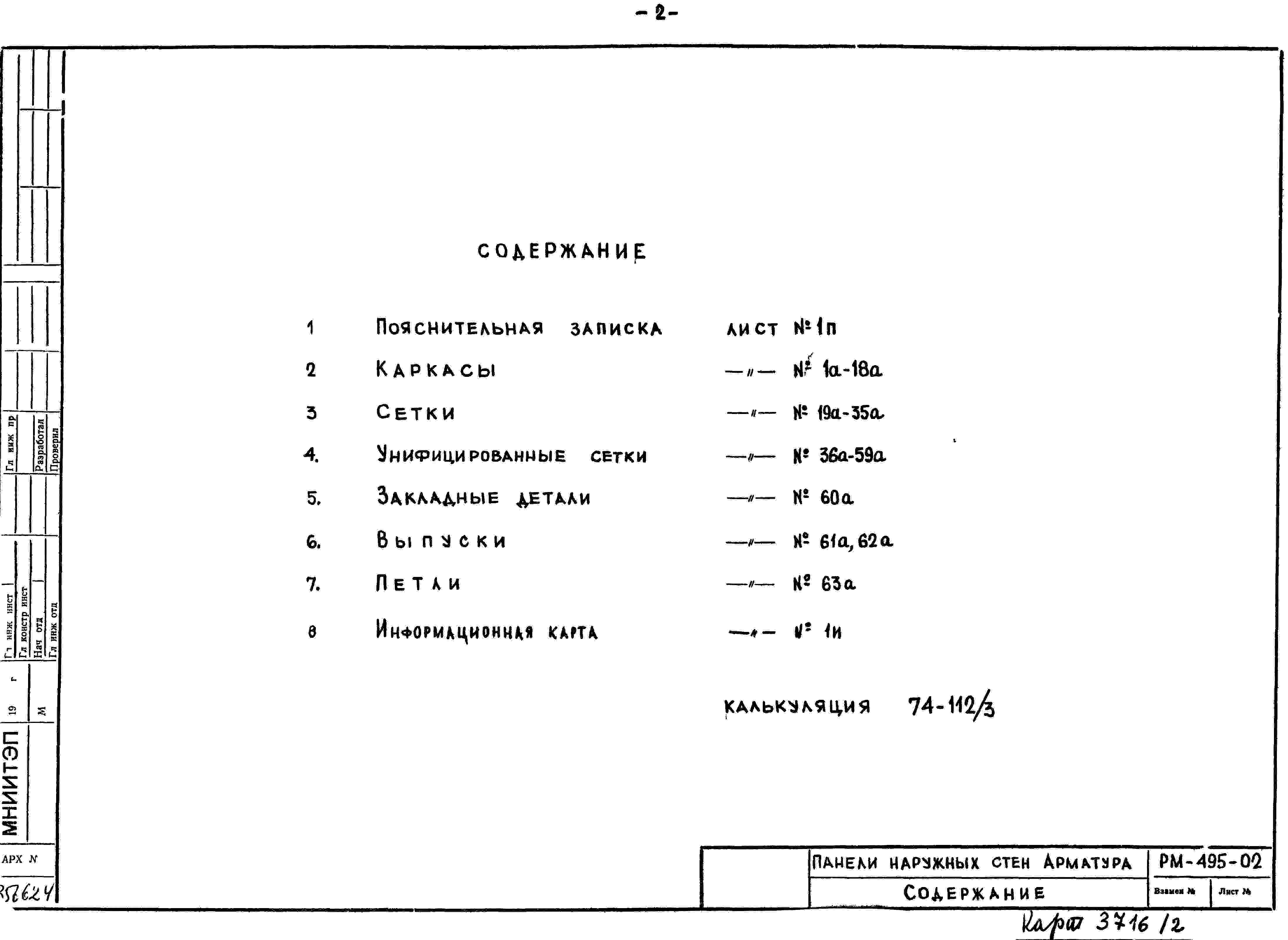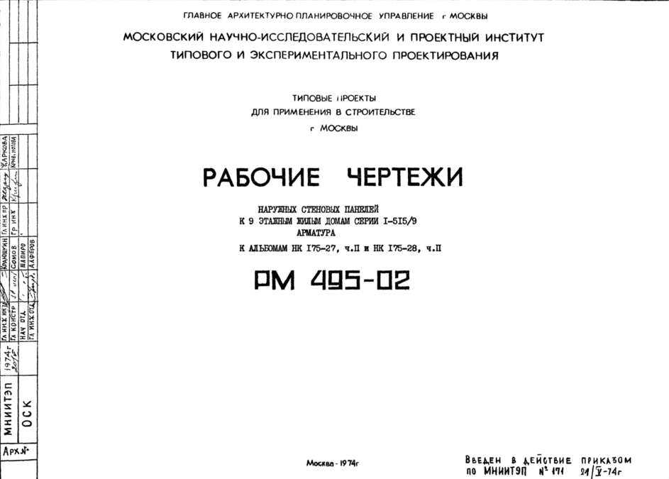 Шифр РМ 495-02 Наружные стеновые панели к 9 этажным жилым домам серии 1-515/9 к альбомам НК 175-27, часть II и НК 175-28, часть II (1974 г.)