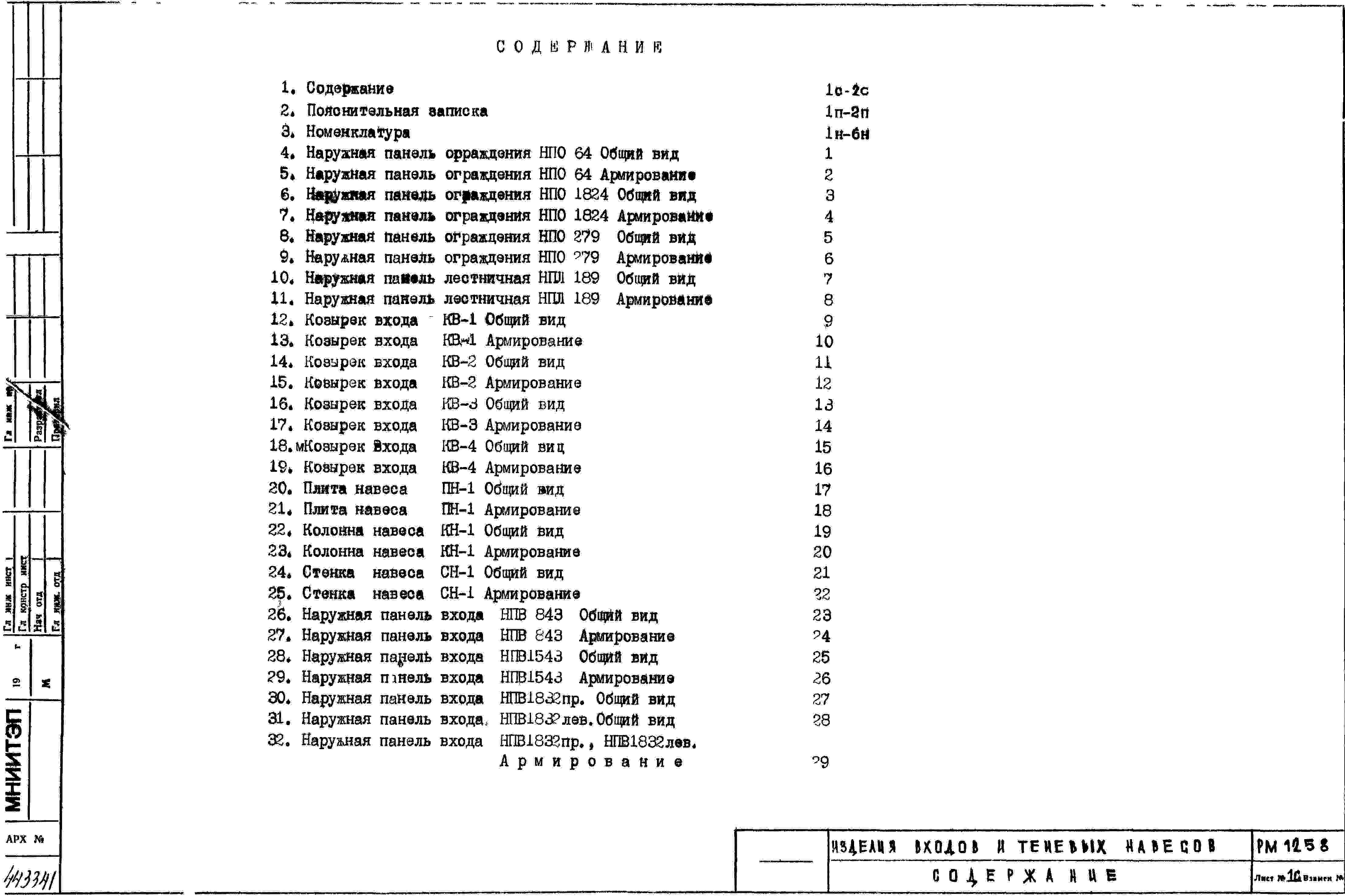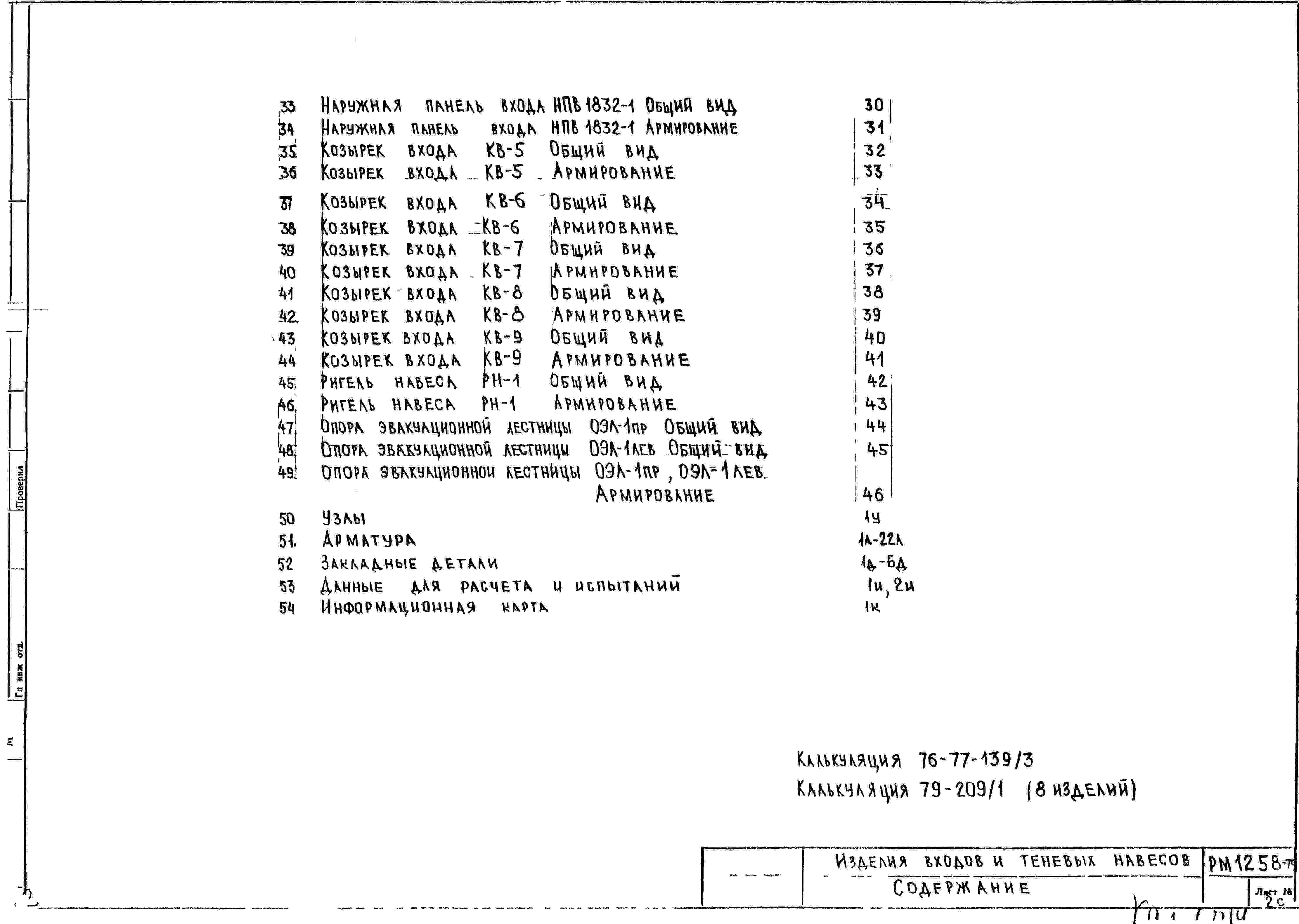 Шифр РМ 1258 Изделия входов и теневых навесов (1978 г.)