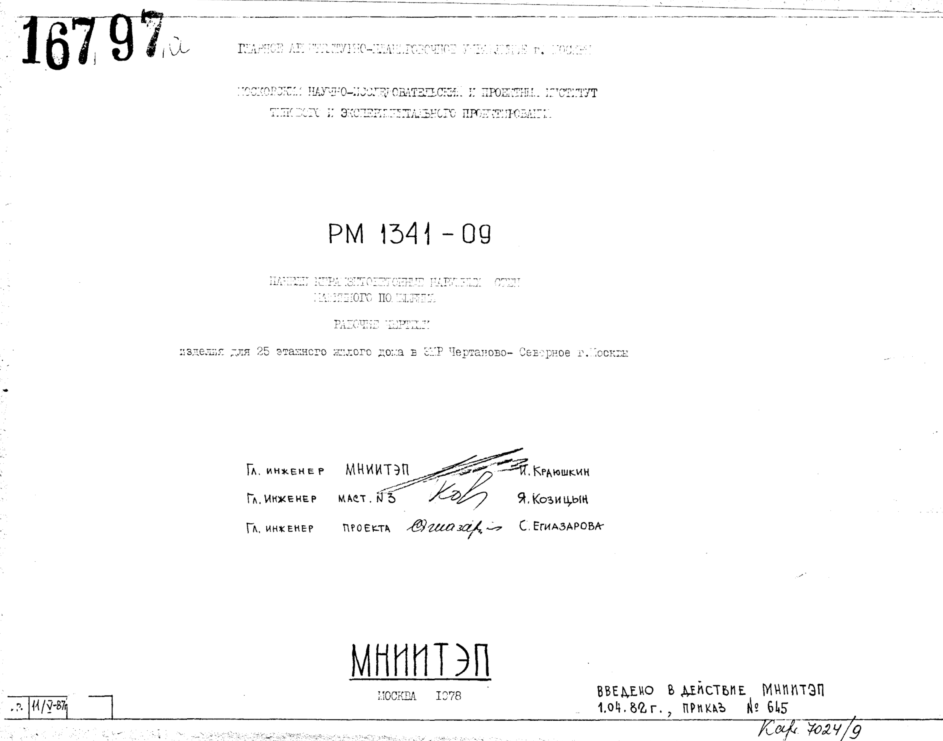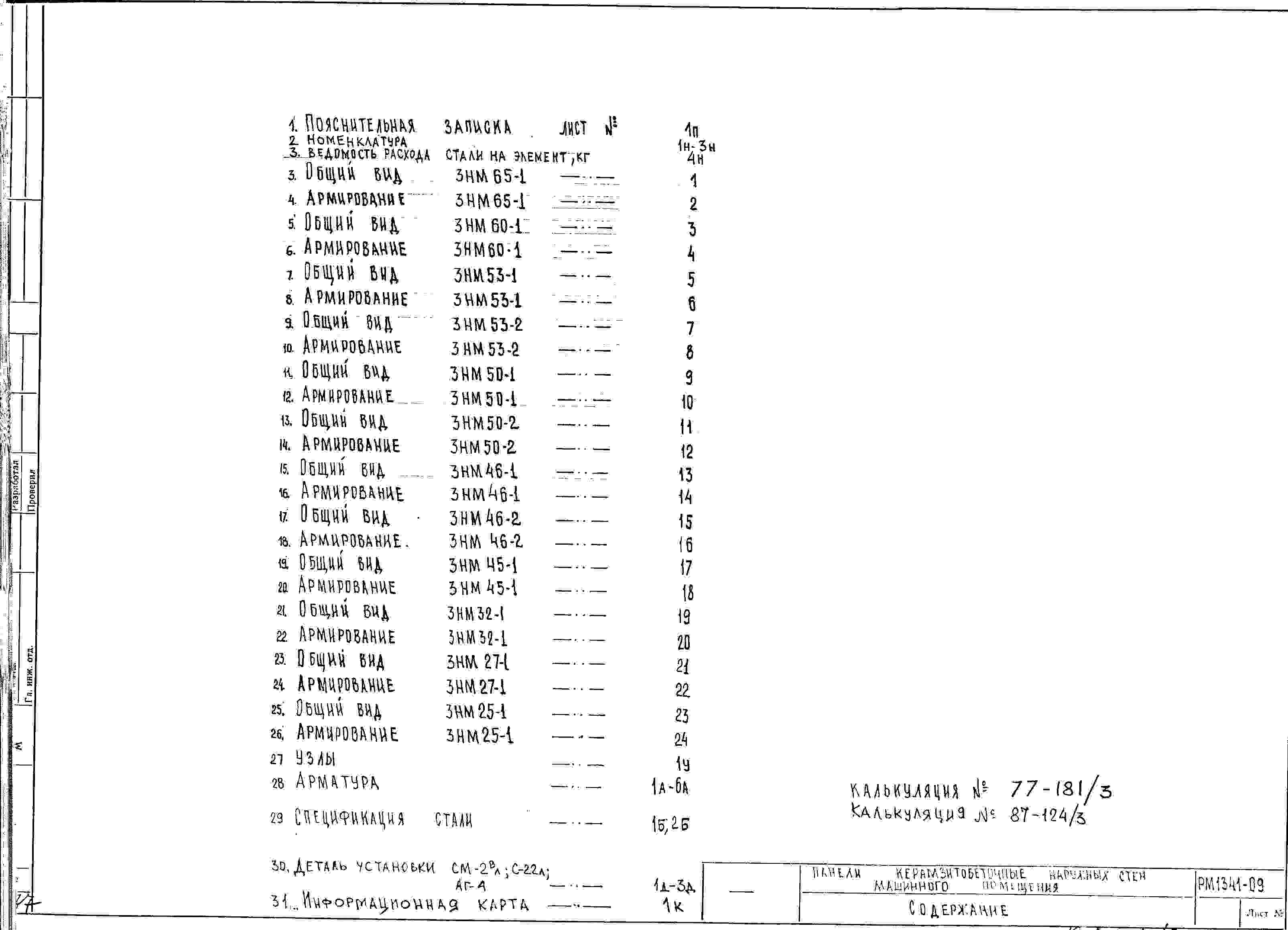 Шифр РМ1341-09 Панели керамзитобетонные наружных стен машинного помещения (1978 г.)