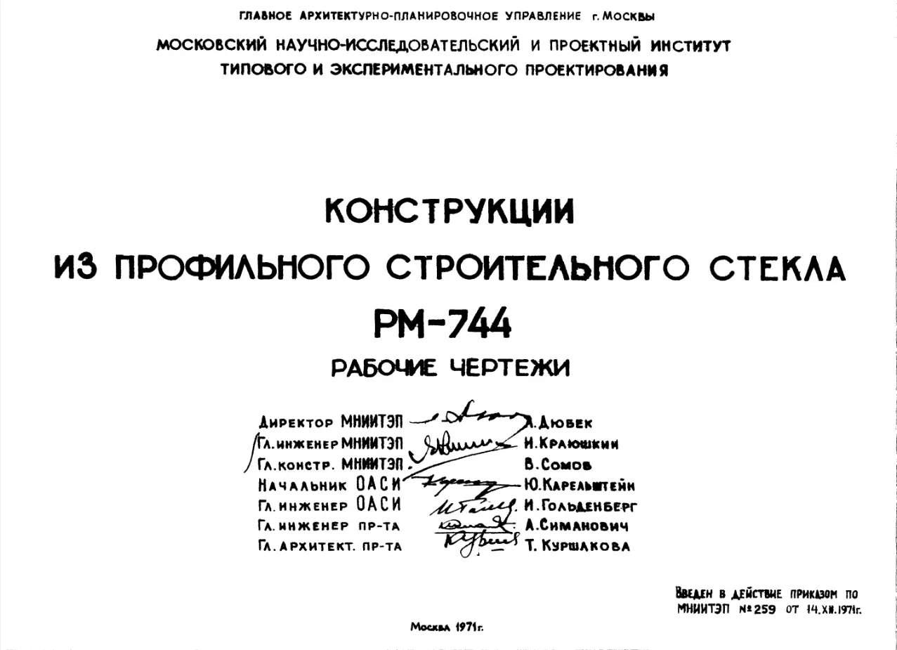 Шифр РМ-744 Конструкции из профильного строительного стекла (1971 г.)