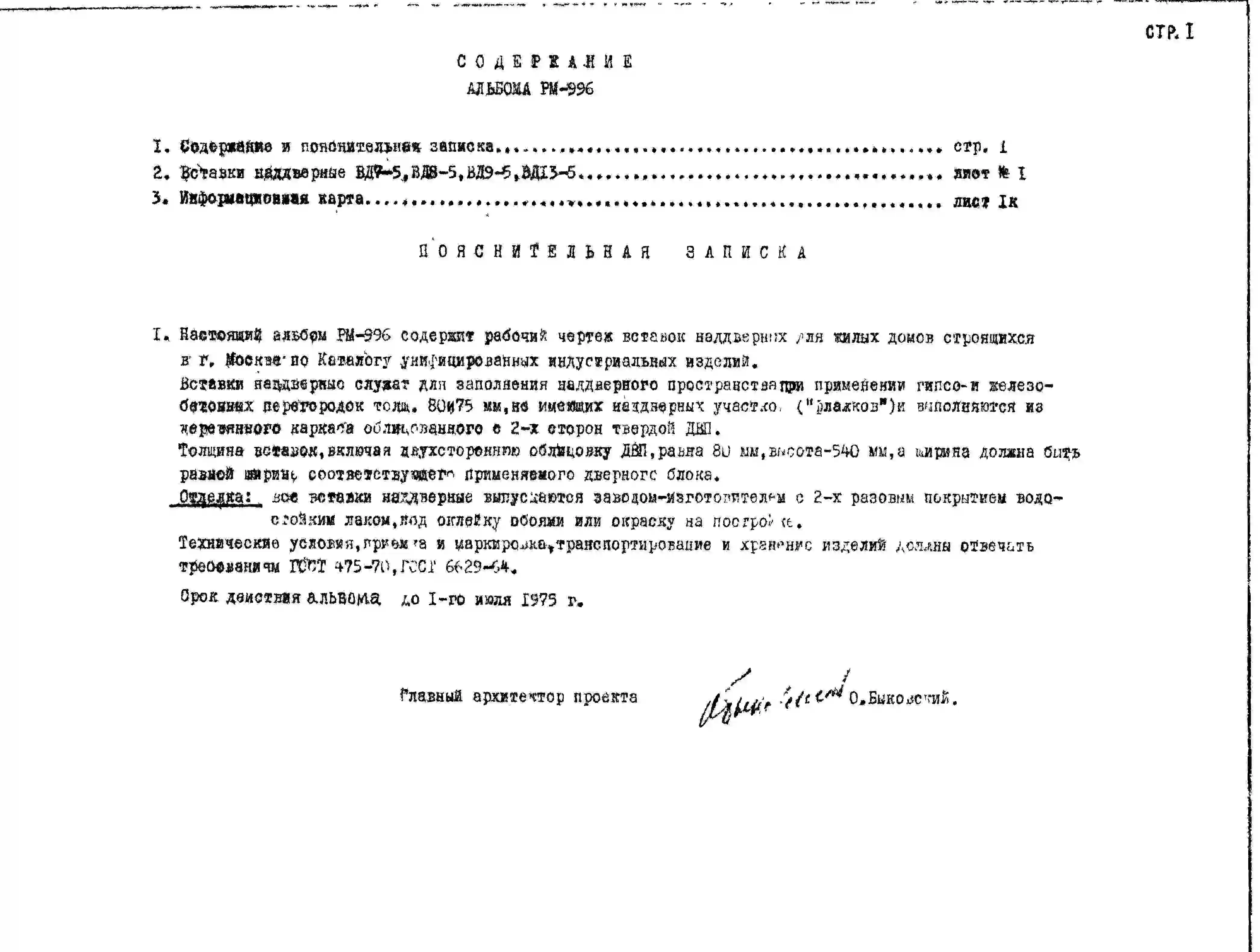 Шифр РМ-996 Двери внутренние деревянные (вставки наддверные) (1974 г.)