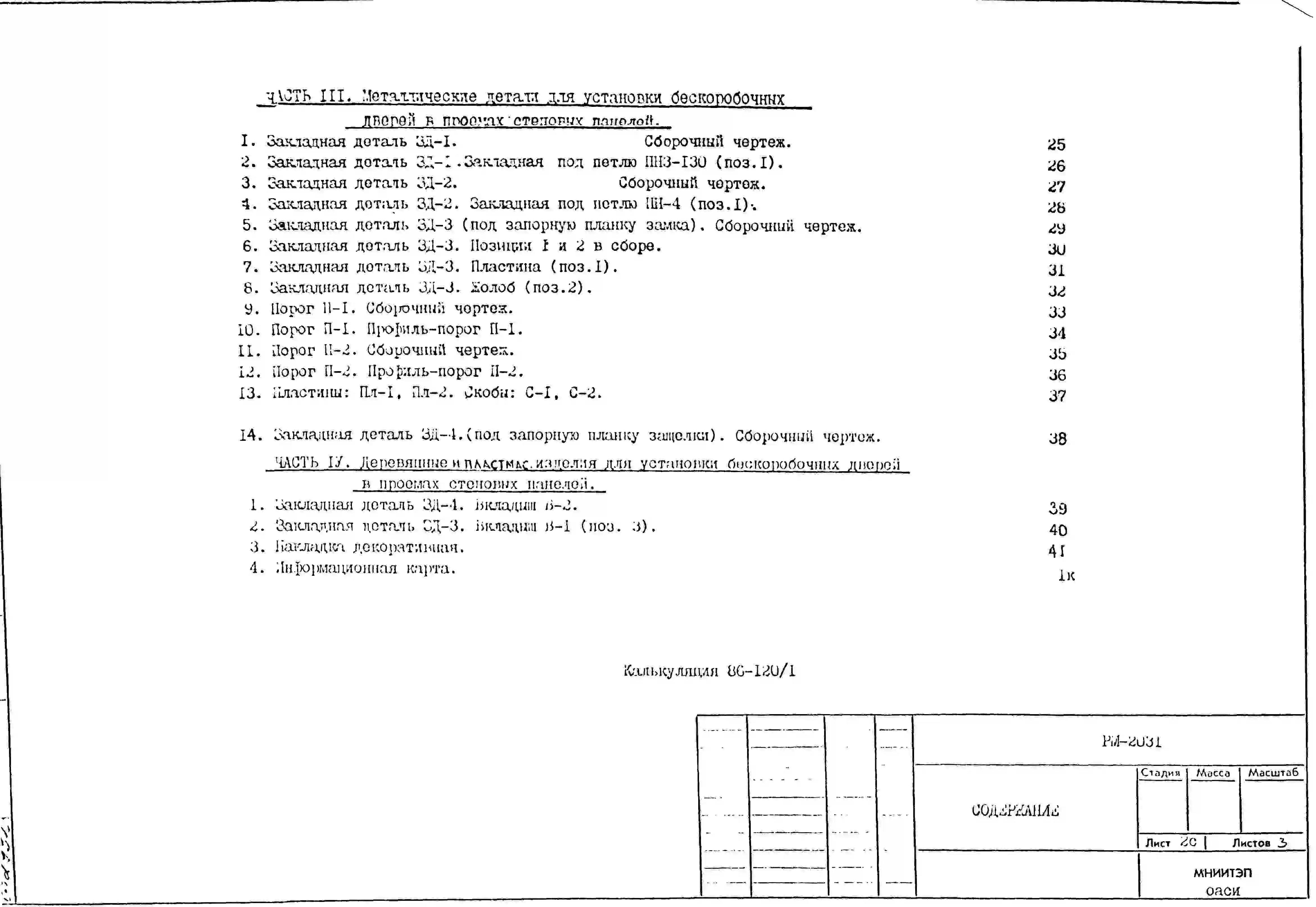 Шифр РМ-2031 Конструкции установки бескоробочных дверей входов в квартиры и внутриквартирных в железобетонных стеновых панелях