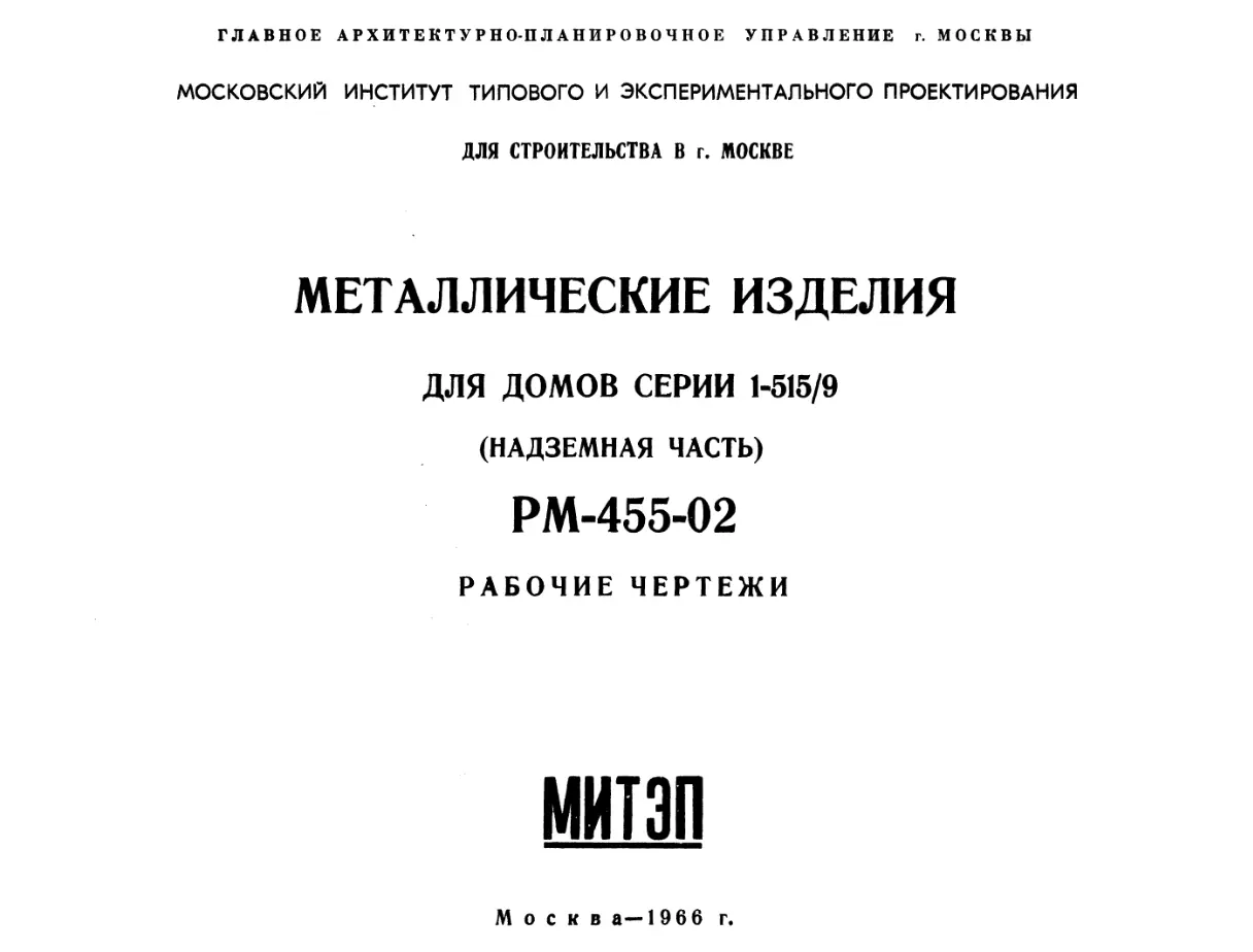 Шифр РМ-455-02 Металлические изделия для домов серии 1-515/9 (надземная часть) (1966 г.)