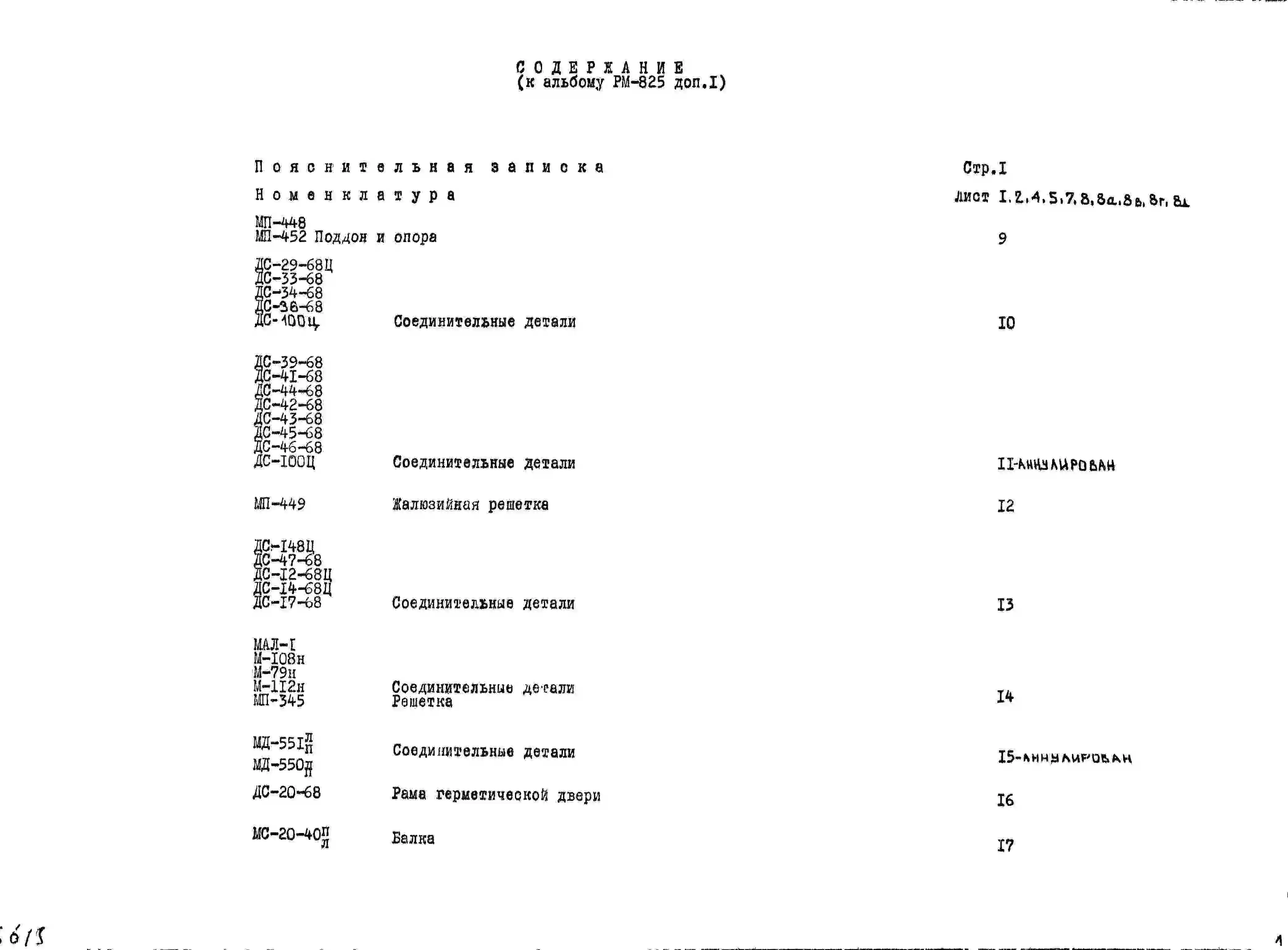 Шифр РМ-825 Металлические изделия (1973 г.)