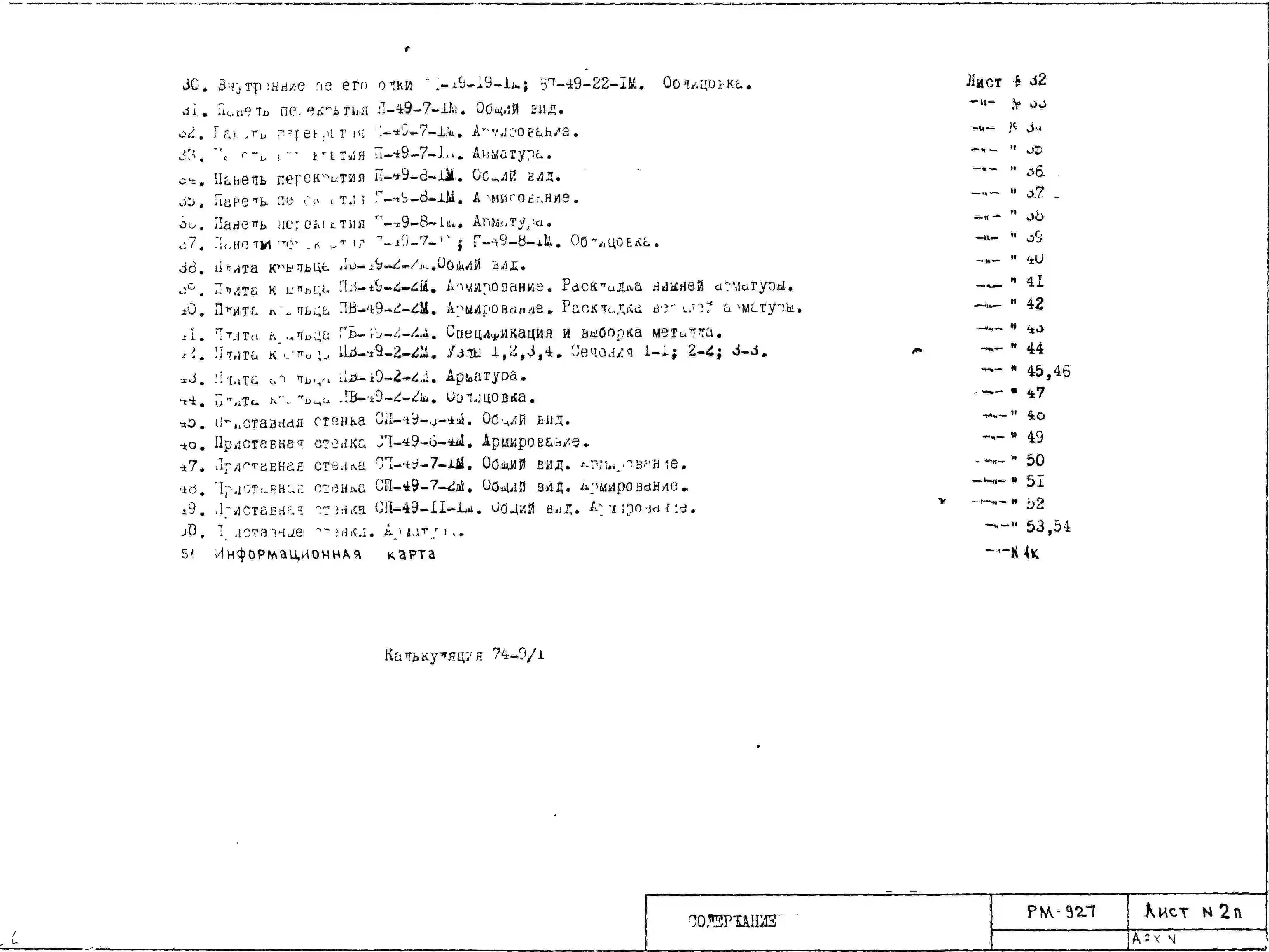 Шифр РМ-927 Железобетонные изделия мусоросборной камеры к жилым домам серии II-49 вариант "Д" (в соответствии с требованиями ВСН-8-72) (1974 г.)