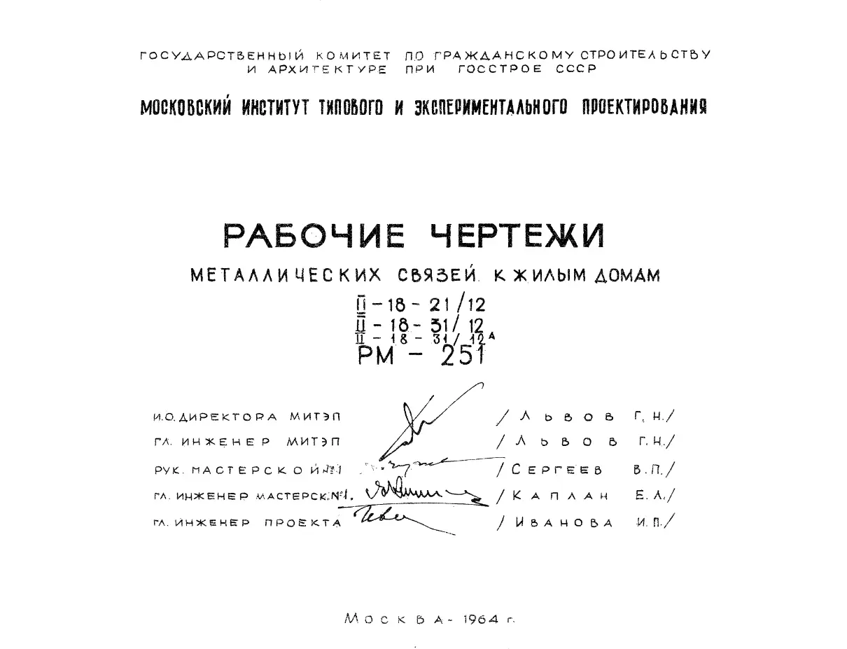 Шифр РМ-251 Металлические связи к жилым домам II-18-21/12; II-18-31/12; II-18-31/12А (1964 г.)