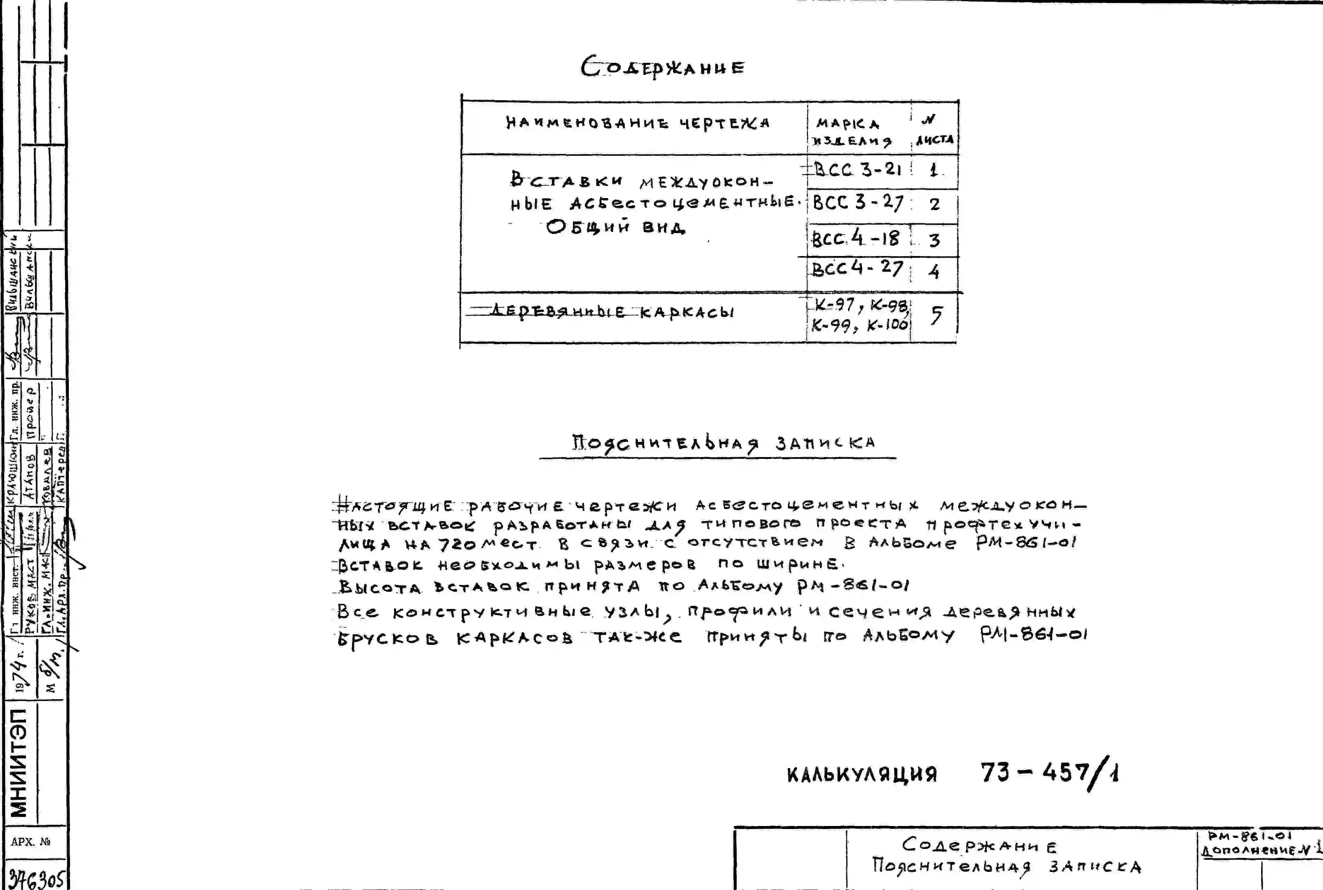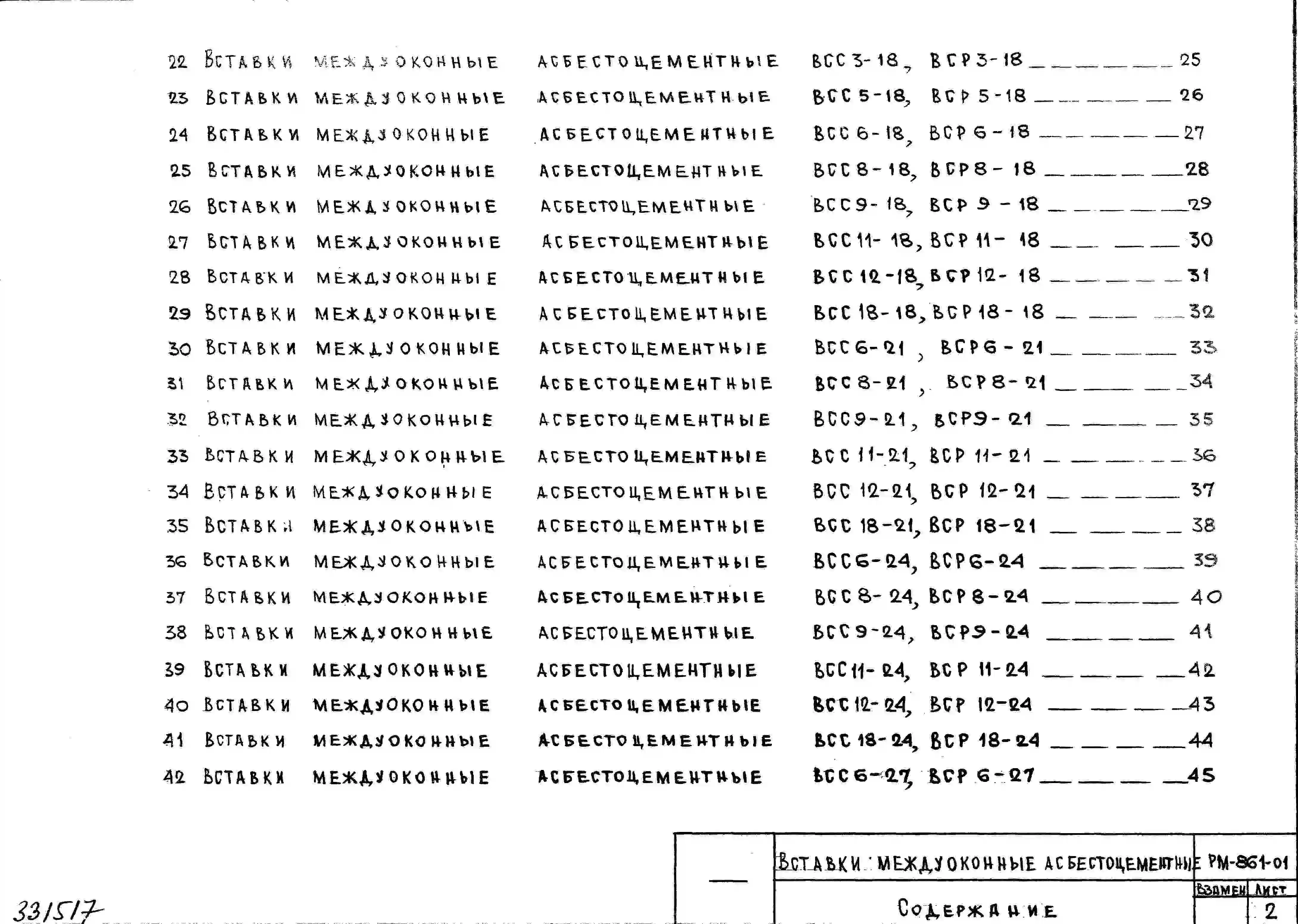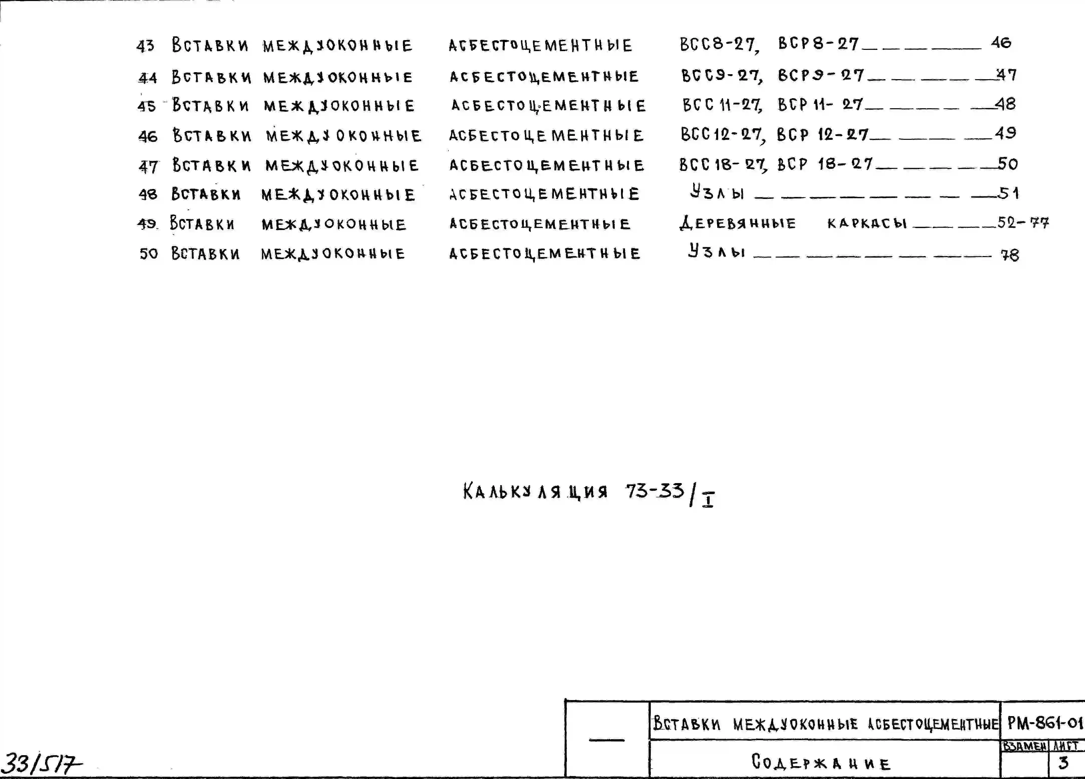 Шифр РМ-861-01 Вставки междуоконные асбестоцементные (1984 г.)