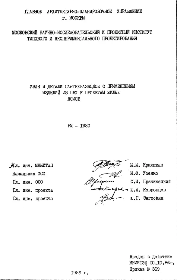 Шифр РМ-1980 Узлы и детали сантехразводок с применением изделий из ПВХ к проектам жилых домов (1986 г.)