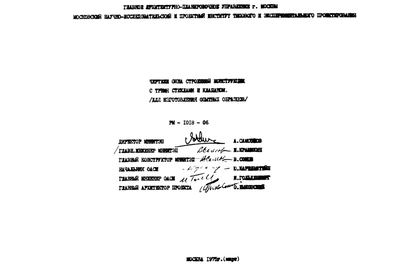 Шифр РМ-1018-06 Чертежи окна строений конструкции с тремя стеклами и клапаном (для изготовления опытных образцов) (1975 г.)