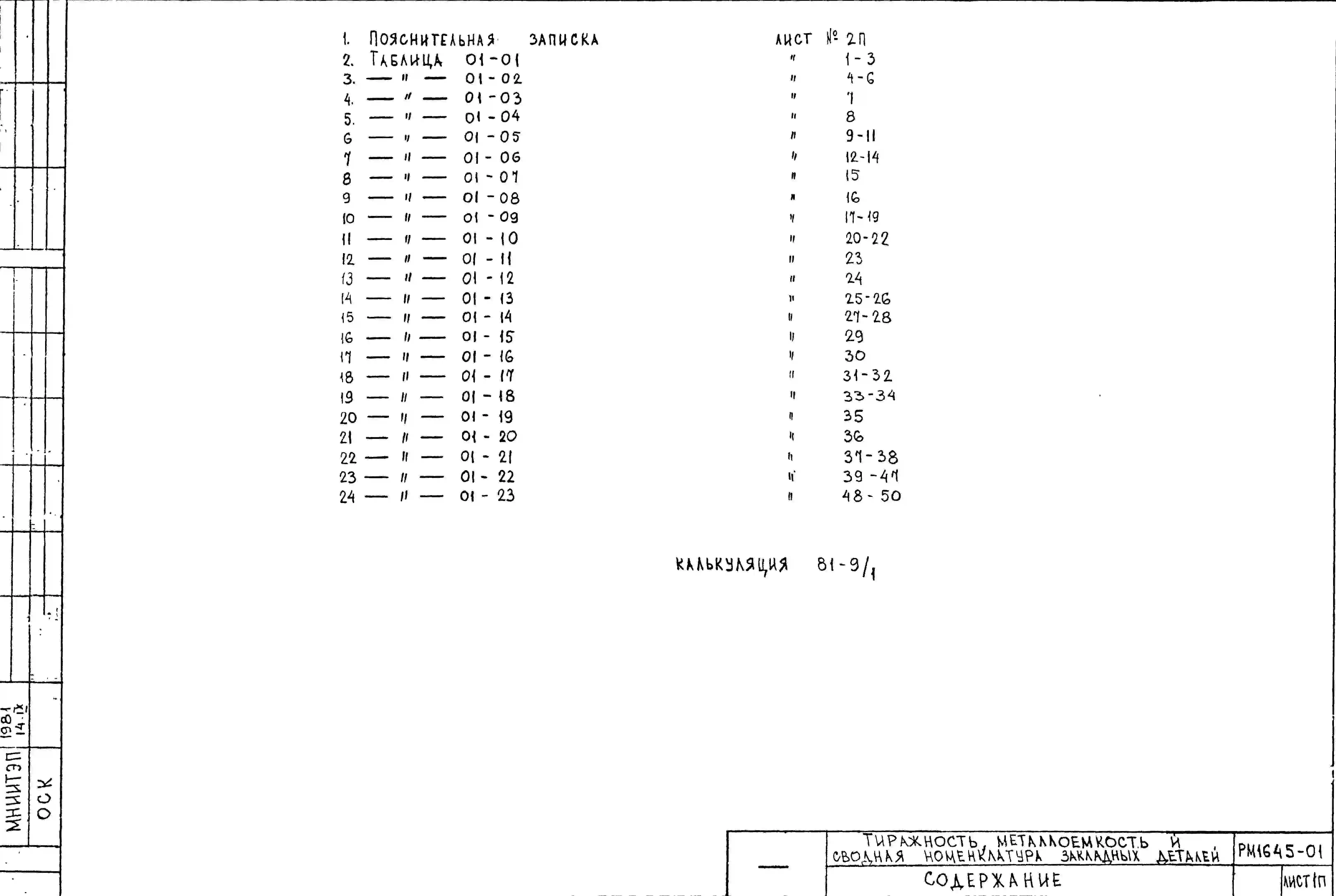 Шифр РМ 1645-01 Расширение области применения и объема внедрения штампованных закладных деталей в изделиях Московского каталога, применяемых для жилых домов панельной конструкции (1981 г.)