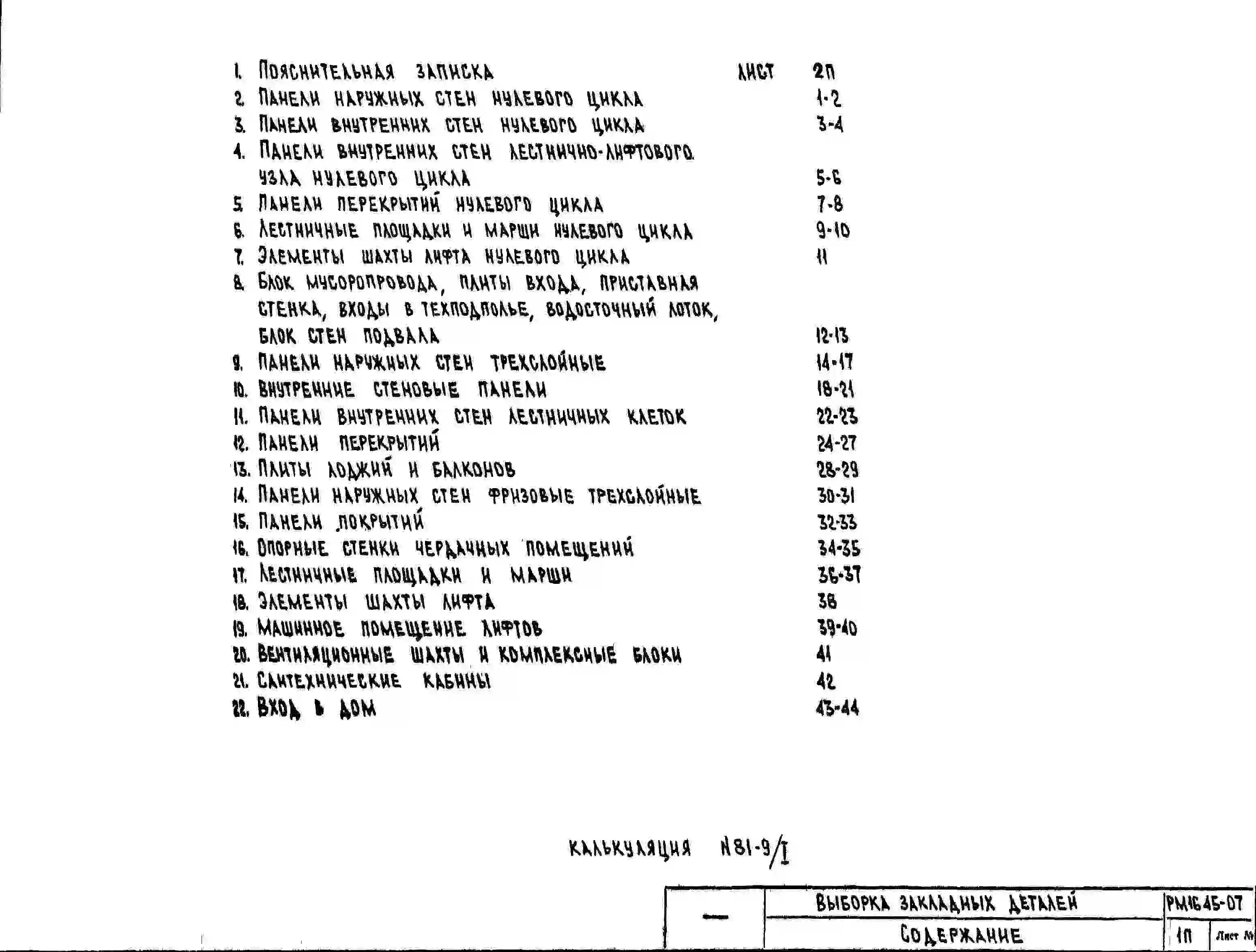 Шифр РМ 1645-07 Расширение области применения и объема внедрения штампованных закладных деталей в изделиях Московского каталога, применяемых для жилых домов панельной конструкции