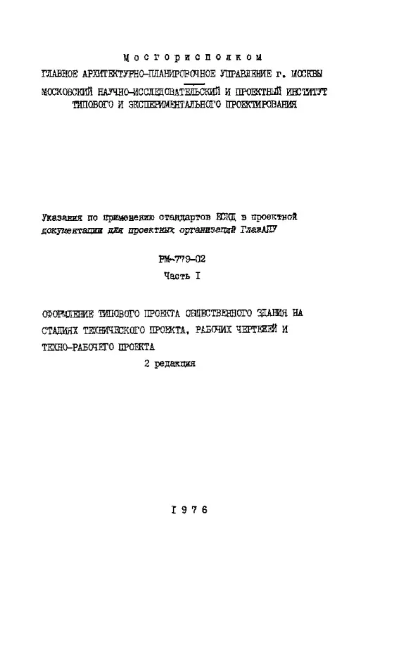 Шифр РМ-779-02 Указания по применению стандартов ЕСКД в проектной документации для проектных организаций системы ГЛАВАПУ (1976 г.)