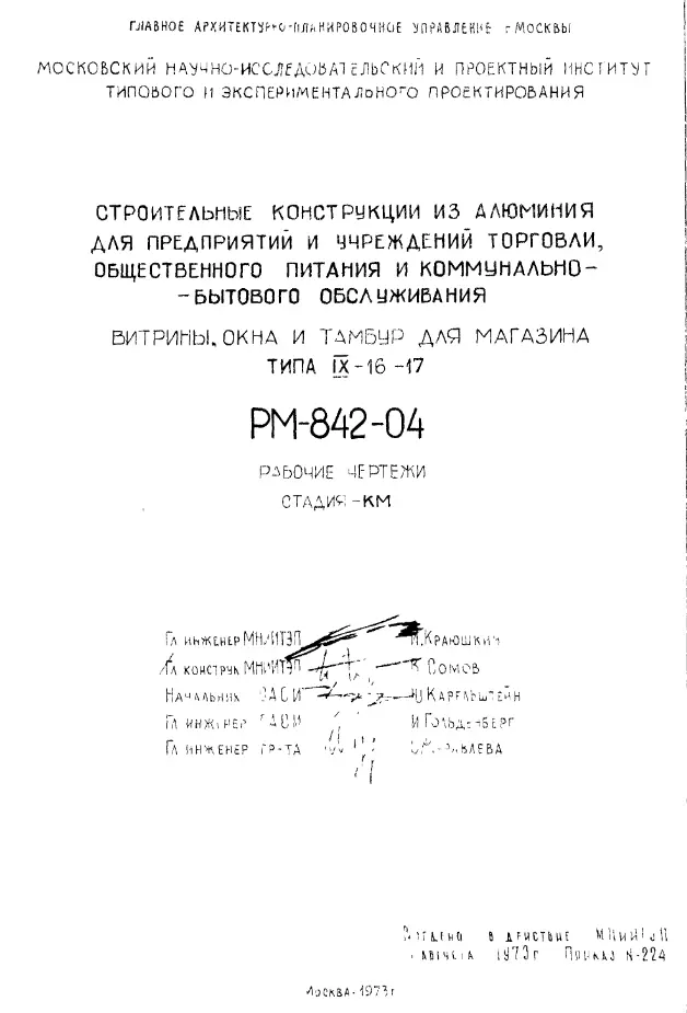 Шифр РМ-842-04 Строительные конструкции из алюминия для предприятий и уреждений торговли, общественного питания и коммунально-бытового обслуживания (витрины, окна, тамбур для магазина типа IX-16-17 (1973 г.)