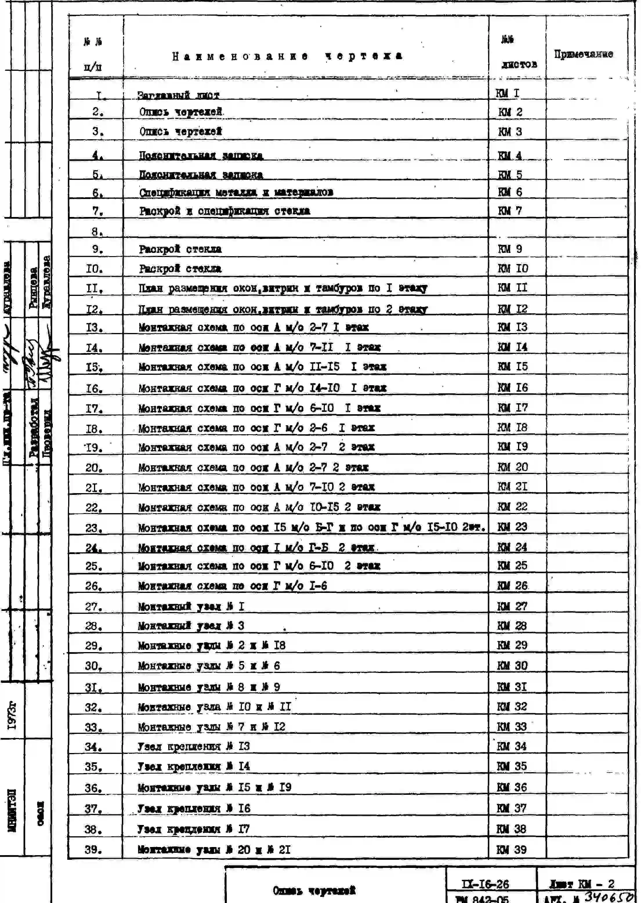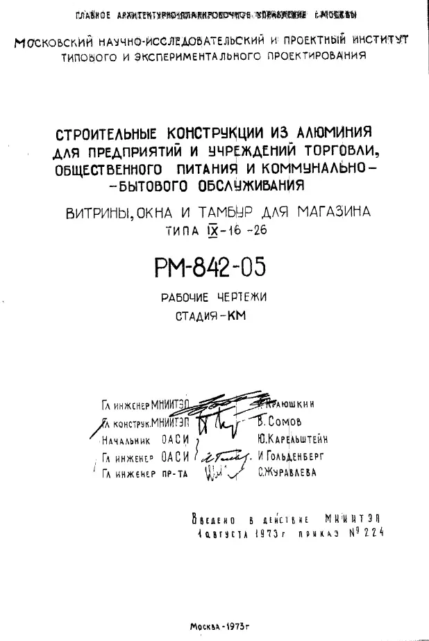 Шифр РМ-842-05 Строительные конструкции из алюминия для предприятий и уреждений торговли, общественного питания и коммунально-бытового обслуживания (витрины, окна, тамбур для магазина типа IX-16-28 (1973 г.)
