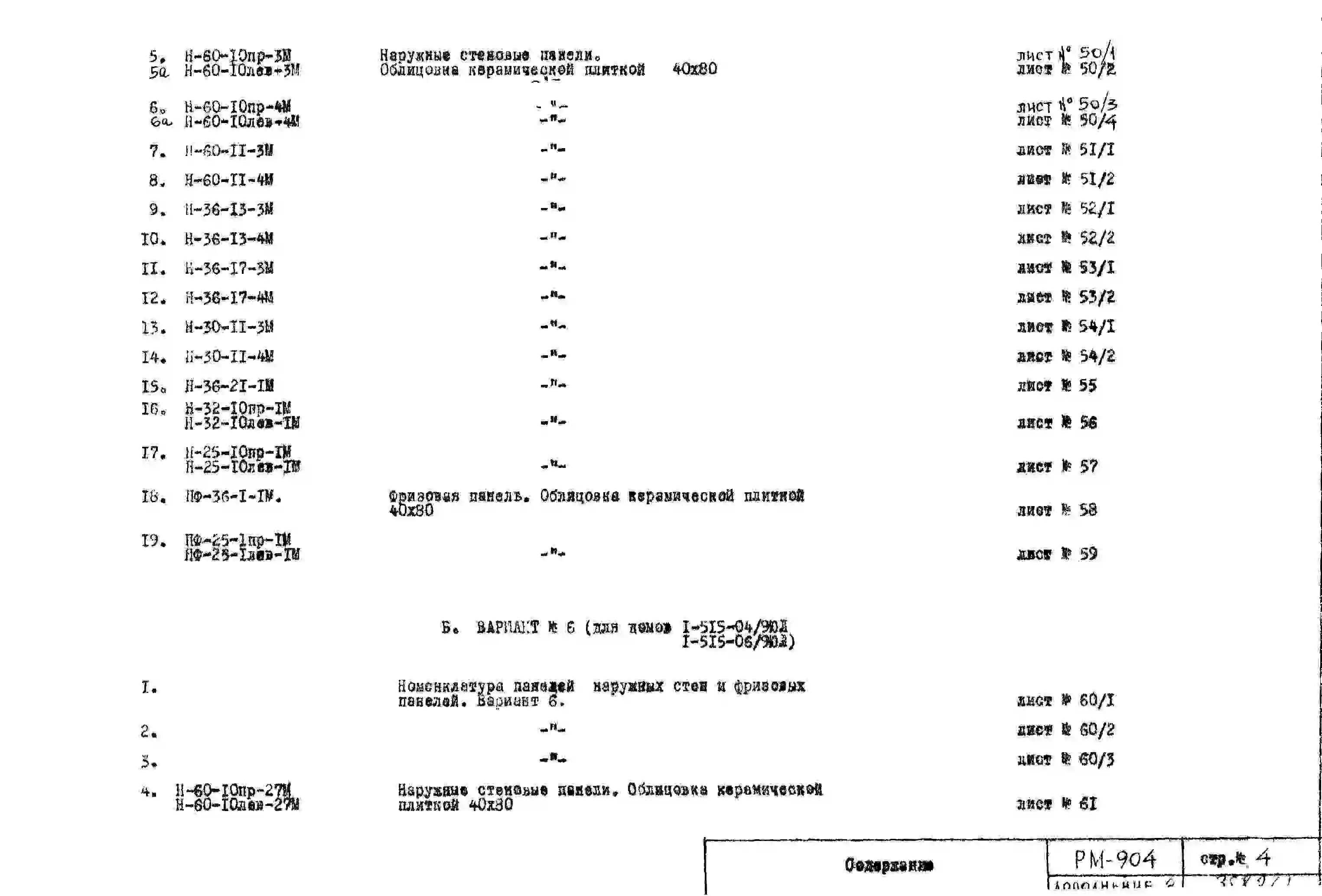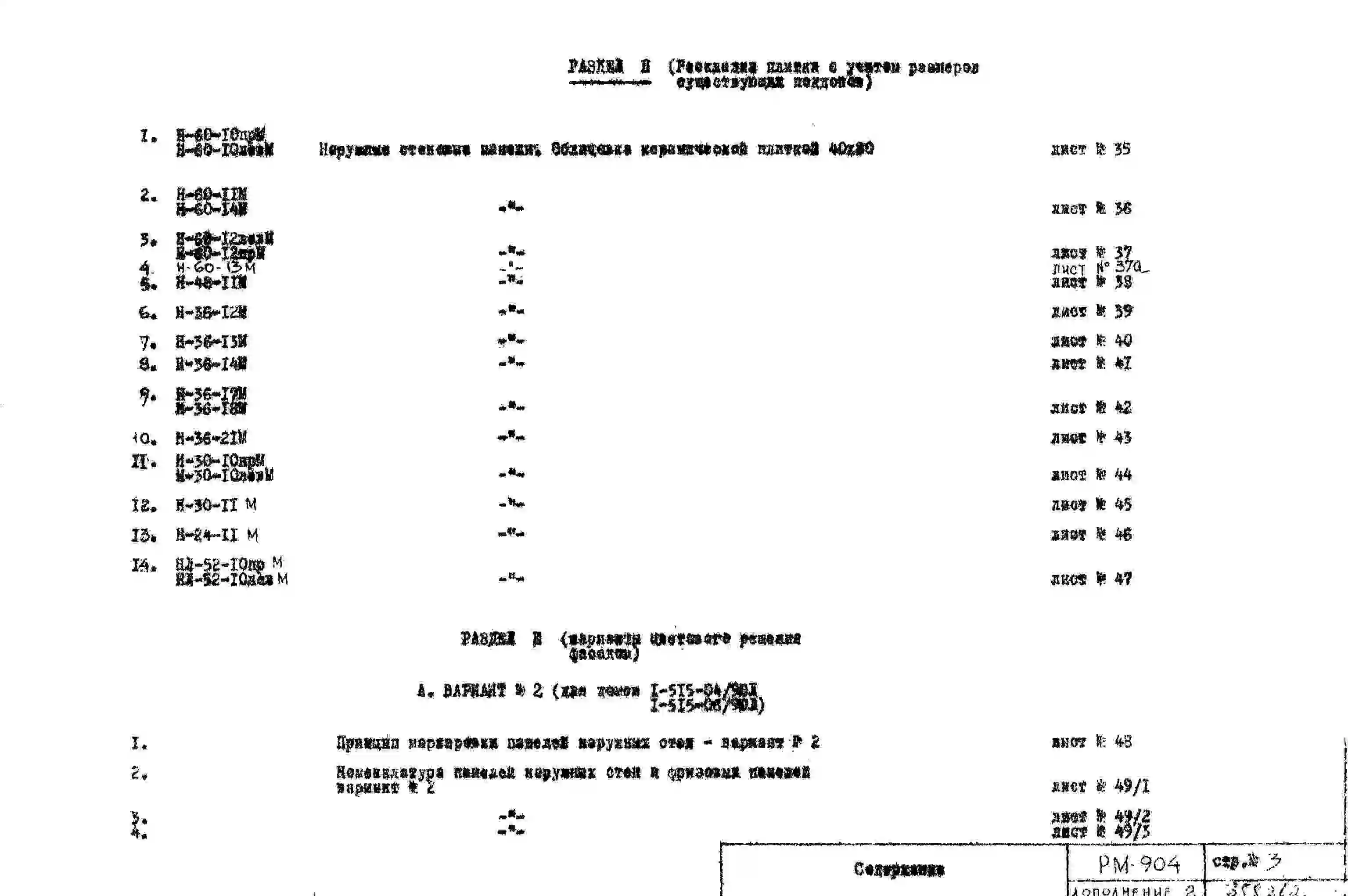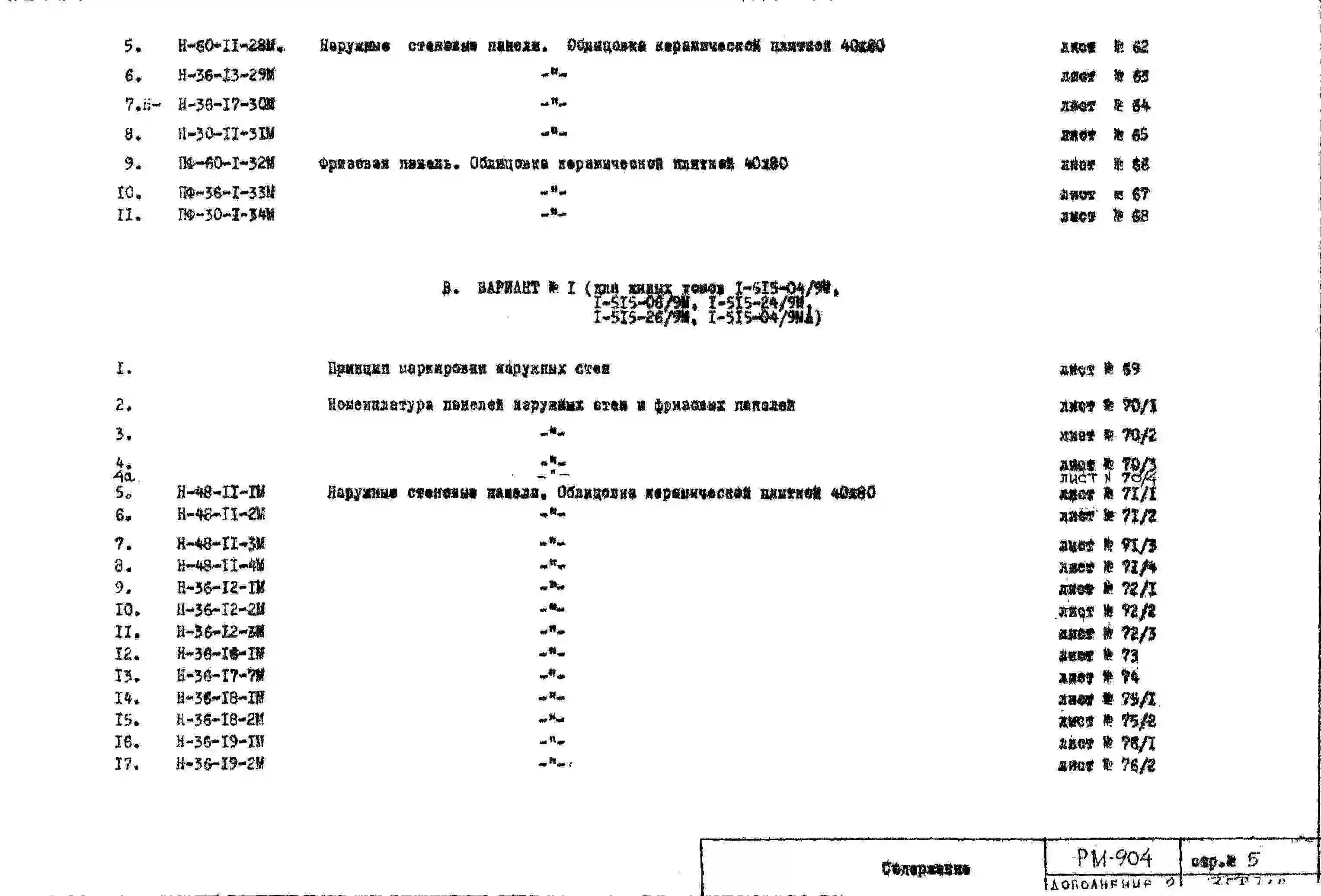 Шифр РМ-904 Наружные стеновые панели к 9-этажным жилым домам серии 1-515/9 (1974 г.)